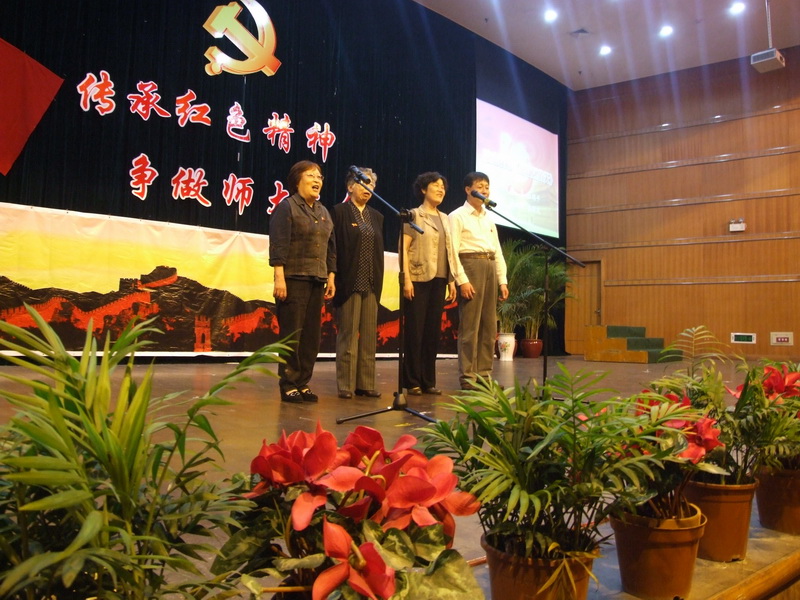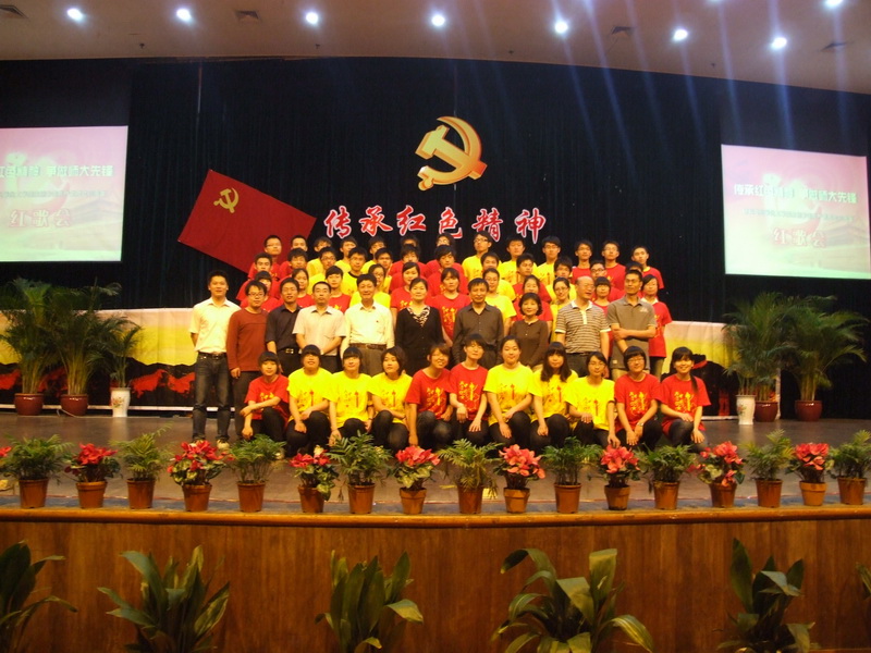 庆祝中国共产党成立90周年红歌会暨2010“魅力集体、年度人物”表彰大会正如火如荼地进行。学院执行院长兼党总支书记邱化玉,党总支副书记何丽君,副院长吴静,老党员代表党真、张瑞平、张文秀、盛国定以及做爱视频