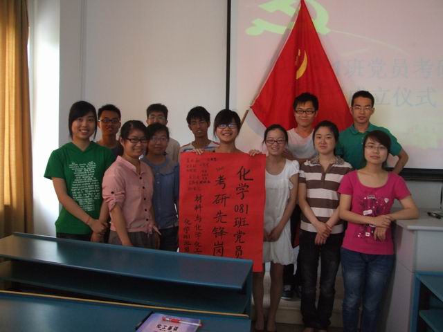 为了加强班级学习气氛,促进考研同学之间的相互学习与交流,发挥学生党员在考研中的先锋模范作用,近日,结合师范生学习就业实际和学院创建基层党建示范点工作,做爱视频 首先在化学081班成立了“师范生考研党员先锋岗”。
