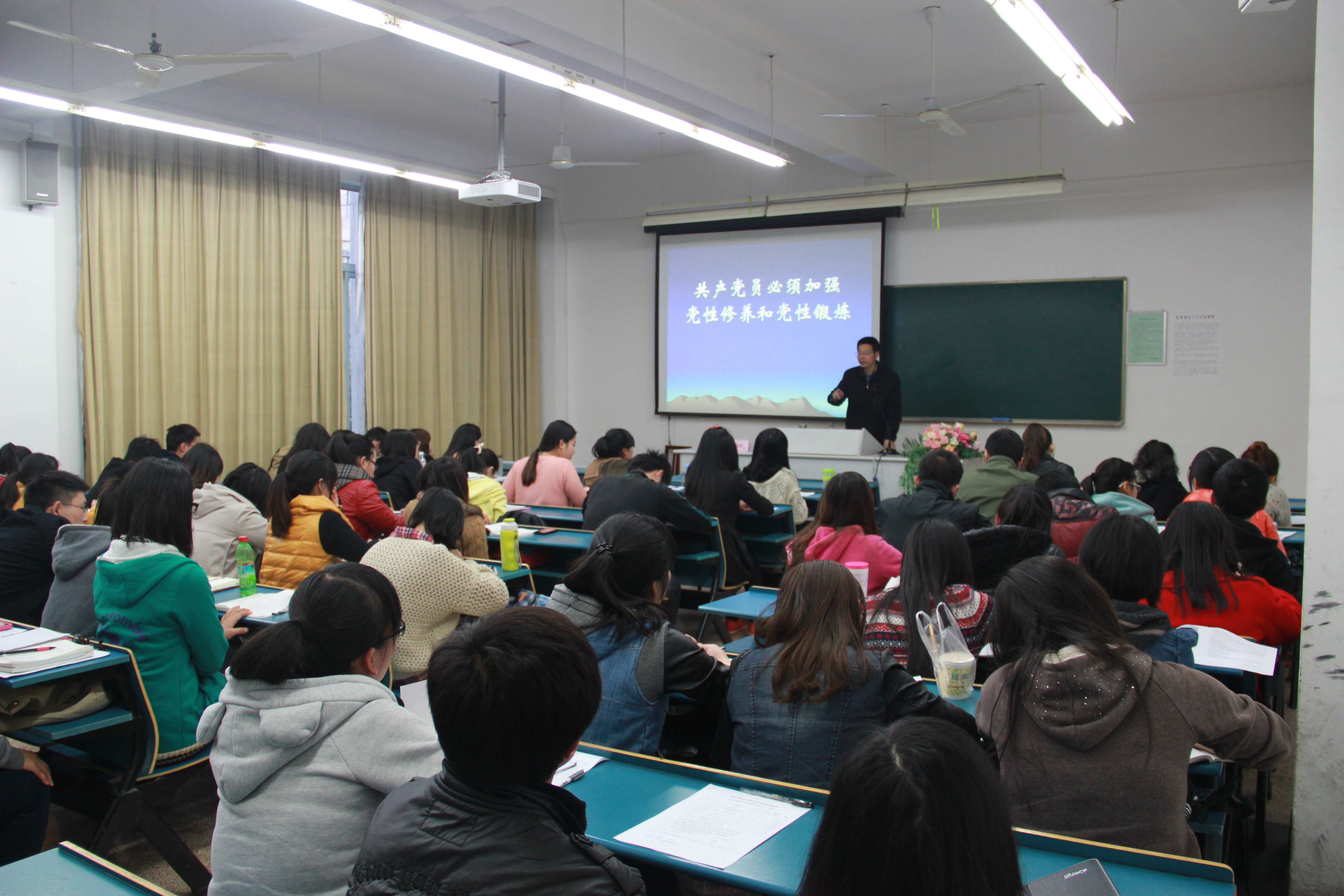 分党校与国际服务工程学院分党校第九期预备党员培训班隆重开讲。人文学院党总支书记严柏炎老师应邀为同学们主讲“共产党员必须加强党性修养和党性锻炼”。