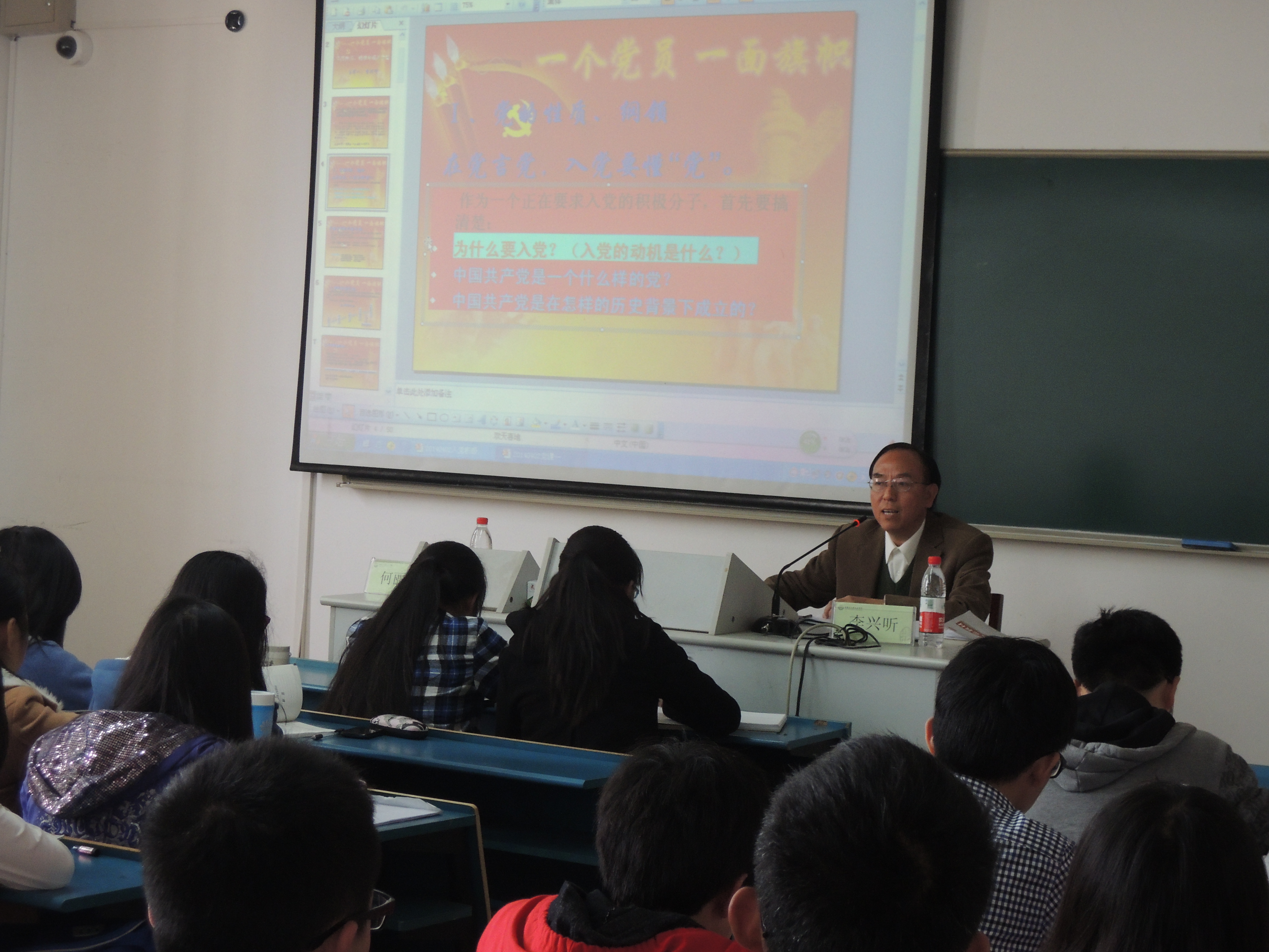 开班典礼之后,李兴听书记为学员们做了“党的性质与纲领”专题讲座。在讲座中,李书记从中国共产党的性质入手,就“两个先锋队”、“一个核心”和“三个代表”的辩证关系展开论述,结合一个个鲜活的史实和自身经历,为同学们形象生动地讲解了我党的光辉形象。李书记对党的十八届三中全会进行了宣讲,要求全体学员要坚定共产主义信念,认真学习,明辨是非,努力实践,加强修养,还要了解实事政治以及社会热点问题,在学习理论知识的同时,积极组织活动,开展各项工作,帮助同学,发挥先锋模范作用。