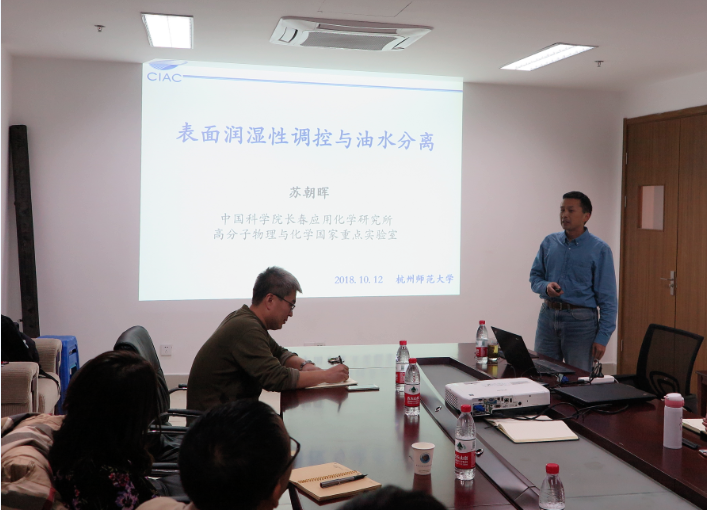 2018年10月12日下午3:00,中国科学院长春应用化学研究所研究员苏朝晖应做爱视频 李勇进教授的热情邀请,为材化师生做了题为“表面润湿性调控与油水分离”的学术报告。
