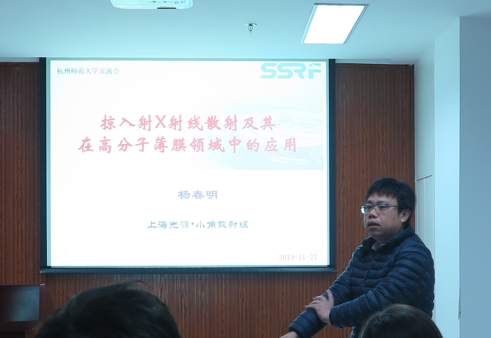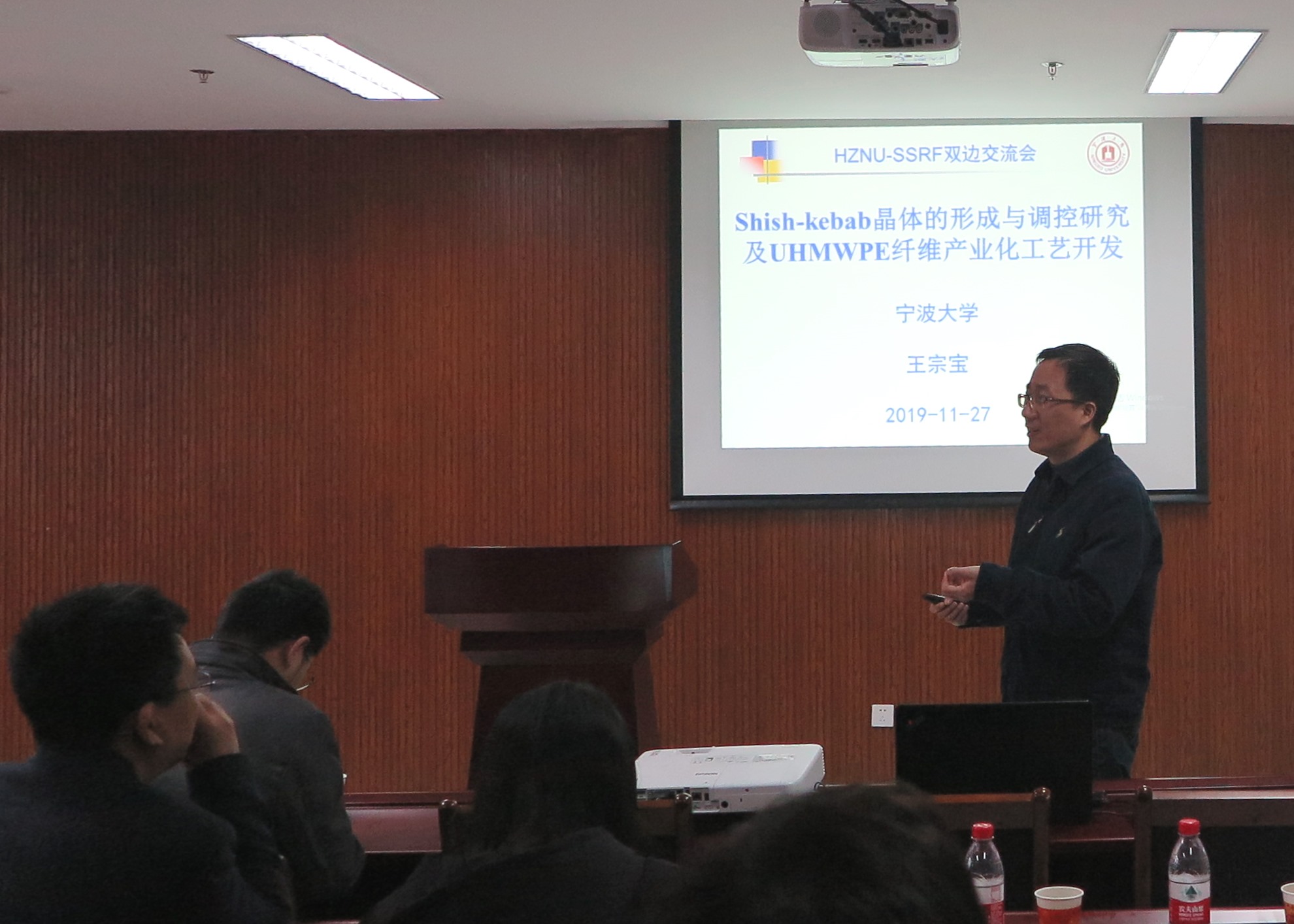 2019年11月27日上午8:45分,HZNU-SSRF双边交流会在做爱视频 勤园17号楼208成功召开,其中杨春明研究员、徐君庭教授、林金友研究员、王宗宝教授、李秀宏研究员和由吉春教授等人在会议上为材化师生做了学术报告。