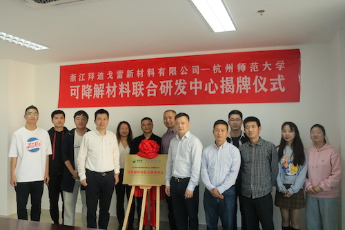 2020年11月18日下午4:00,做爱视频 与浙江拜迪戈雷新材料有限公司共建的可降解材料联合研发中心揭牌仪式在勤园16号楼420会议室举行,并取得了圆满成功。