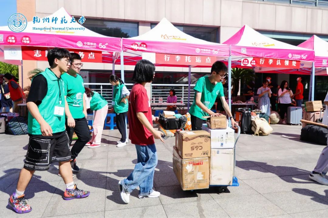 迎新现场,学院志愿者成为了迎新工作的“主力军”。穿梭在校门口、报道点、寝室楼内的“材化绿”成为了校园内的一抹亮丽风景。