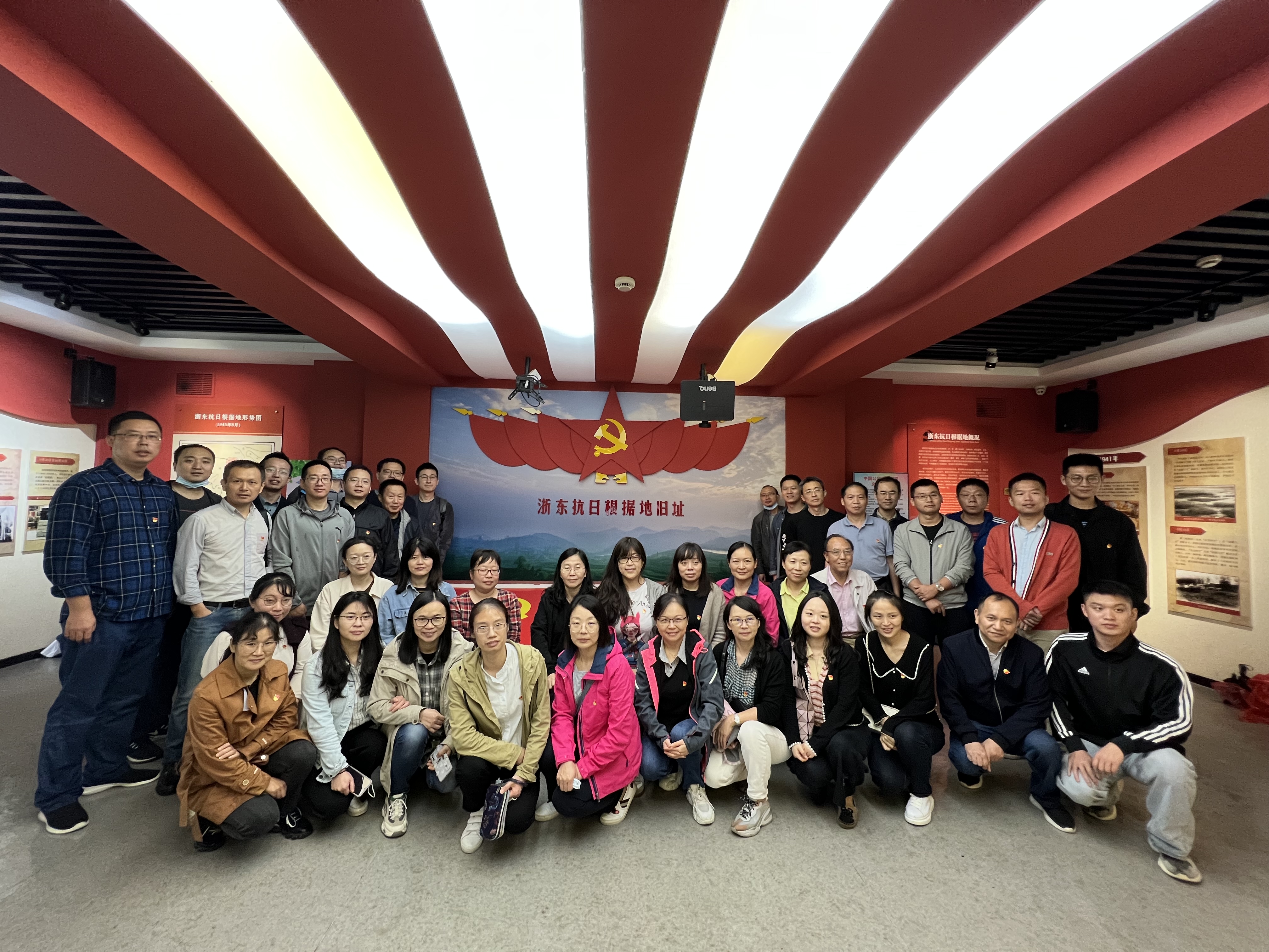 教工党员在浙东抗日根据地旧址内合影留念
