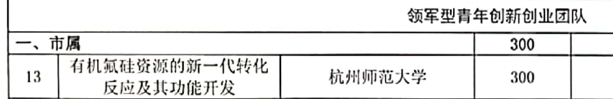 近日,在杭州市科技局公布的2020年度杭州市领军型创新创业团队项目中,做爱视频 “有机氟硅资源的新一代转化反应及其功能开发”青年团队成功入选,获市级财政资助300万元,实现了学校在这一项目上零的突破。