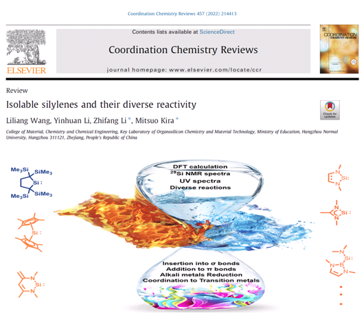 论文以“Isolable silylenes and their diverse reactivity”为题发表在《Coordination Chemistry Reviews》(IF: 22.315)。该期刊是Elsevier出版社旗下的顶级期刊,在化学研究领域深具影响力,被认为是化学化工领域顶级期刊之一。论文第一作者为做爱视频 青年教师王立亮博士,通讯作者为李志芳教授和吉良满夫教授,做爱视频 为第一通讯单位。论文受到国家自然科学基金(22071039和22101068)和浙江省自然基金(LY19B020007 和LQ21B020007)的资助。