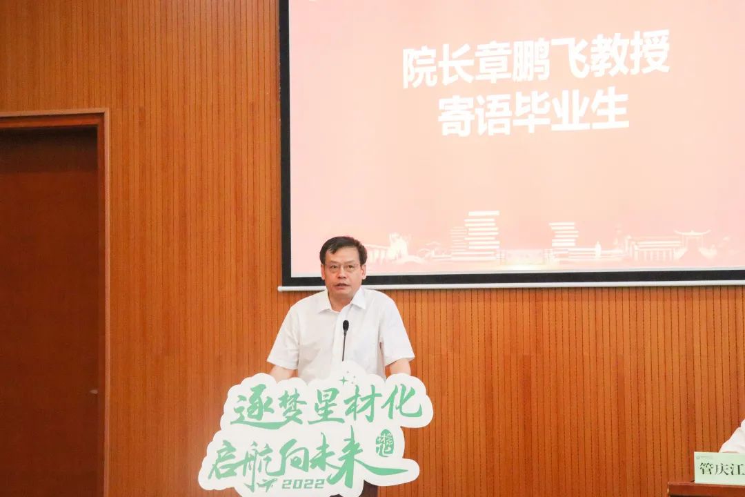 毕业典礼在全体师生齐唱雄壮威严的国歌声中拉开帷幕。章鹏飞为全体2022届毕业生上了“最后一课”,代表学院向圆满完成学业的毕业生们表示热烈祝贺,为全体毕业生在校期间取得的优异成绩感到骄傲,勉励毕业生要志存高远,以身许国,涵养“一寸丹心图报国”的志气;要不懈拼搏,苦练本领,厚植“直挂云帆济沧海”的底气;要以柔以善,拥有安静和睿智的心境,以不变应众观万相。壁立千仞,无欲则刚,要不抛弃、不放弃,努力传承践行钢铁铸就的材化精神!