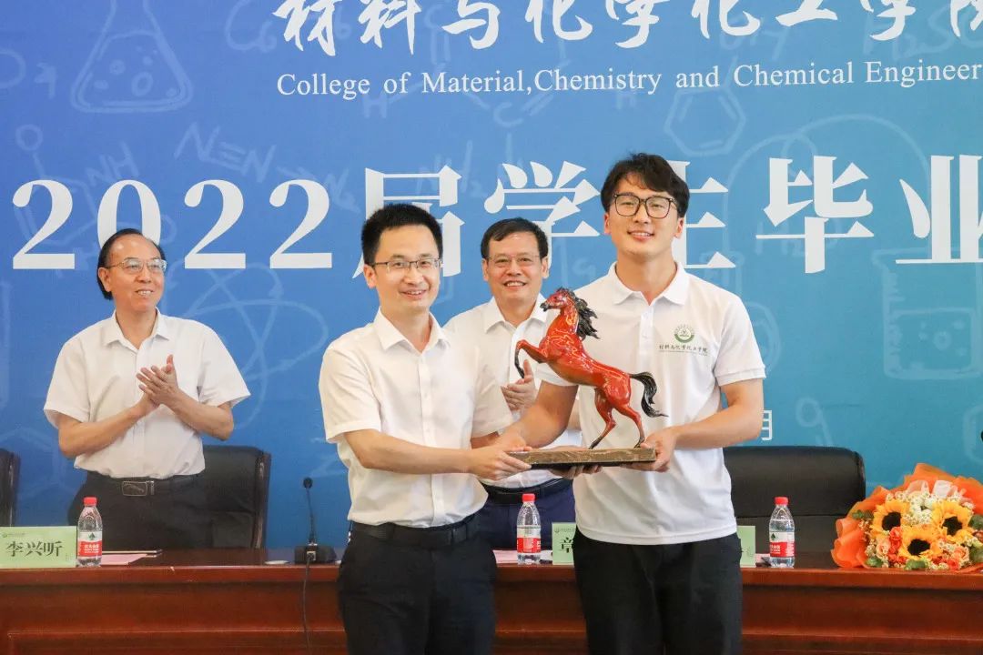 饮水思源,感恩母院。江齐里代表学院接受毕业生赠送母院的纪念品——《马到成功》,寓意毕业生希望和母院一起驰骋万里,大展宏图。在致辞中,江齐里深情寄语毕业生在未来的征程上,以梦为马,不负韶华,继续谱写人生华章;心系母院,加强交流,争取实现共同成长;青春赛道,繁花似锦,奋力跑出最佳成绩。