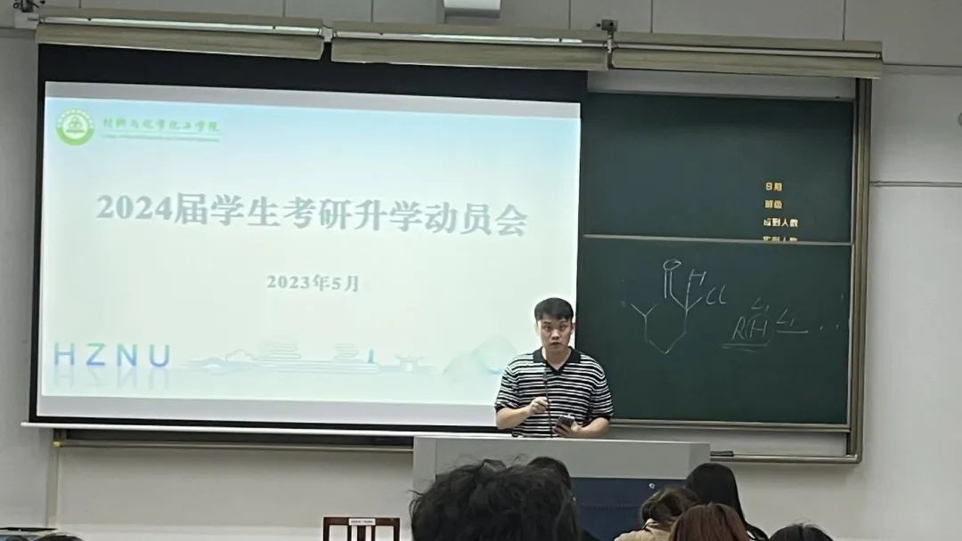 任浩浩结合往届毕业生考研情况,从往届届学生总人数、考研报考人数、复试人数、研究生录取率、录取学校的占比以及毕业生的流向等方面说明了考研的重要性和优势所在,为学生考研鼓舞了信心,增强了力量。