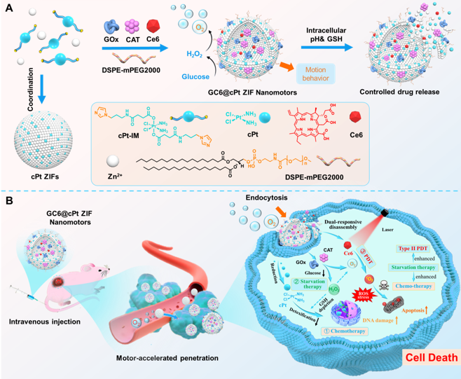 图1 GC6@cPtZIF纳米马达的设计及其在肿瘤治疗中的应用