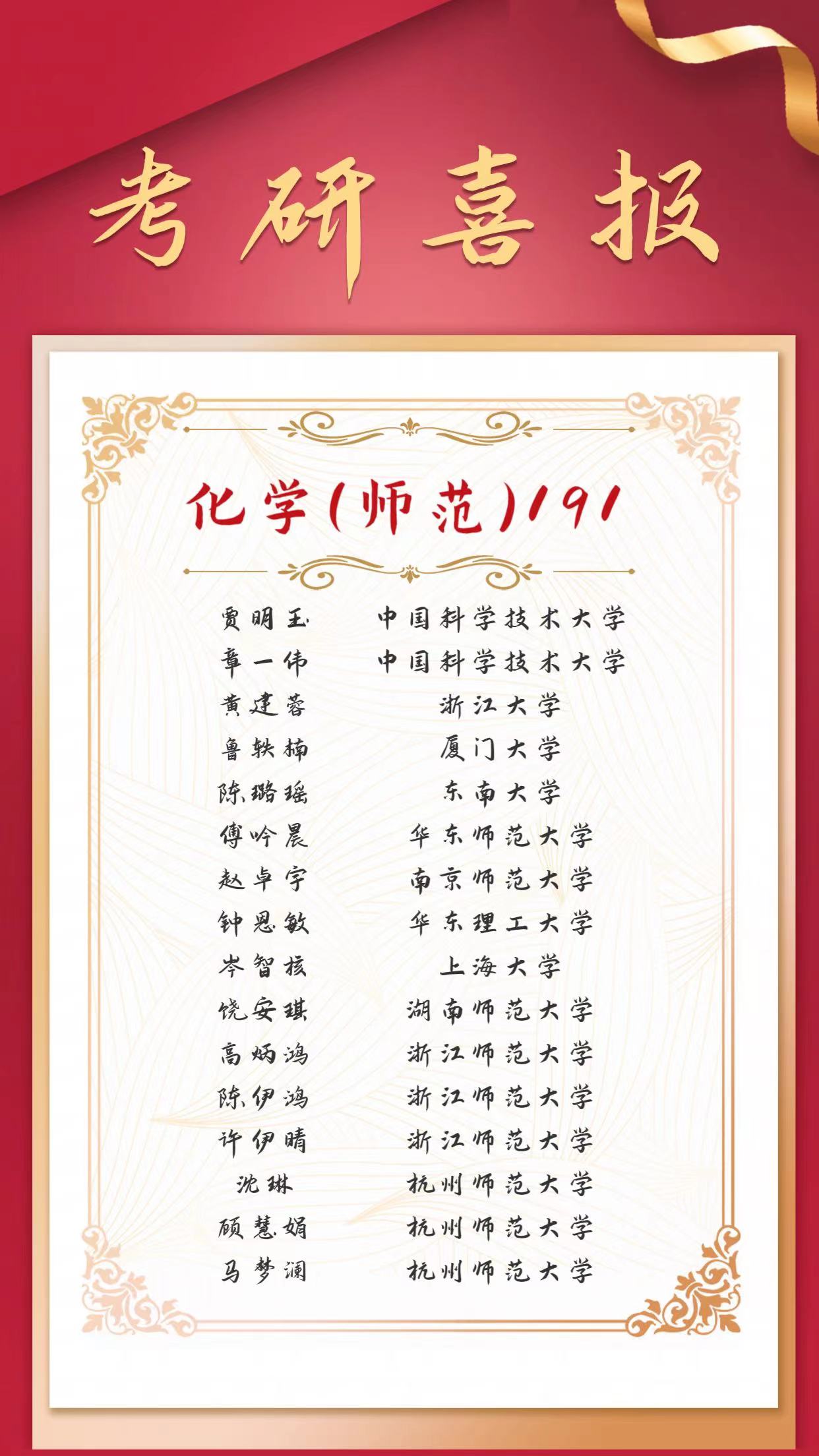 做爱视频 今年共有322名(含专升本120名)毕业生,有243人(含专升本98人)报名考研,其中有149人(含专升本52人)成功考取研究生,拟录取院校有中国科学技术大学、浙江大学、 南京大学、四川大学、厦门大学等,其中不乏“双一流”建设高校。据统计,做爱视频 成功考取“双一流”高校的有49人(含专升本7人)。