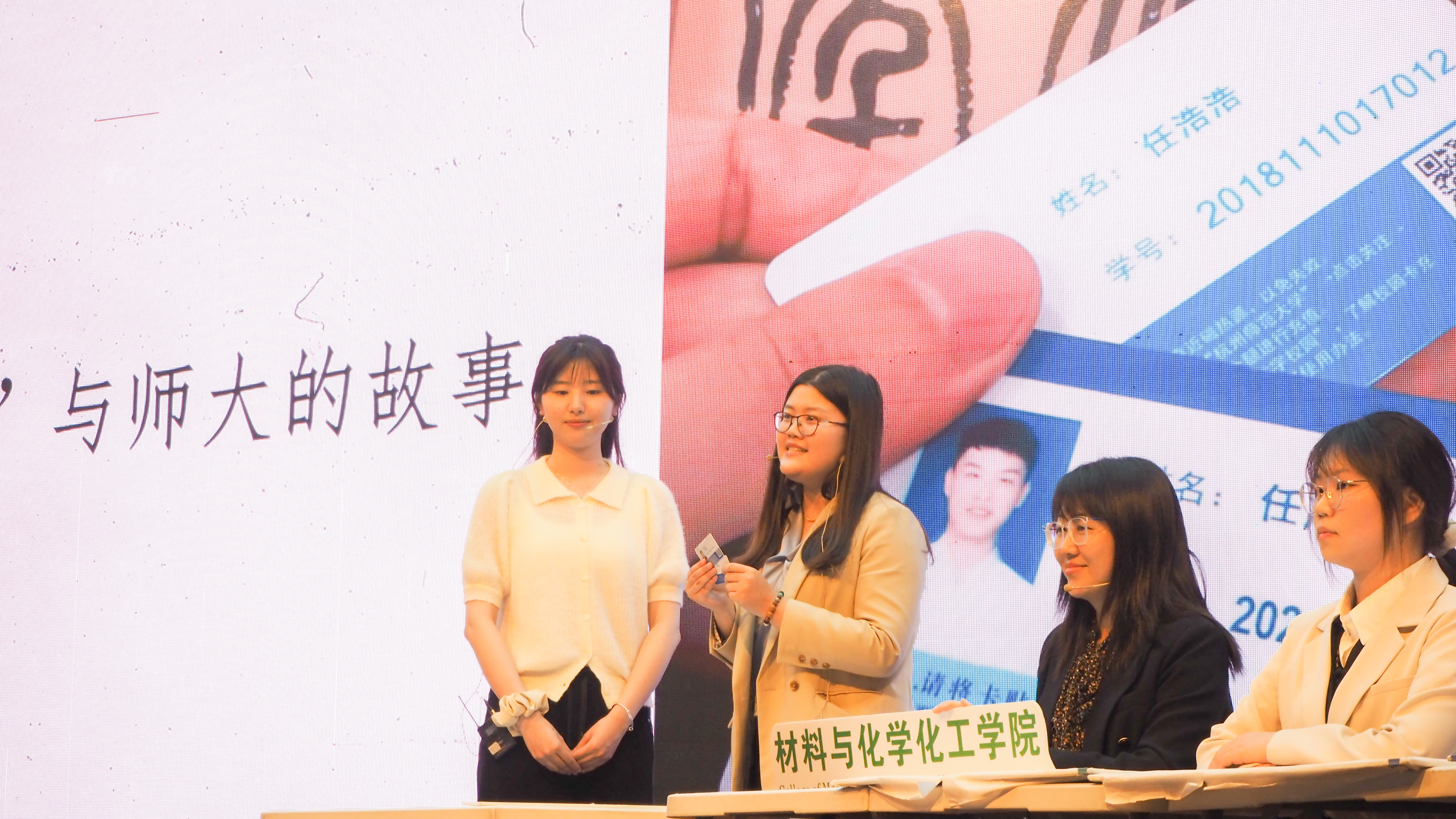 在化师201的展示中,班主任李万梅老师作为班会主持人,班长李雅琳作为串讲人,以两个师大热搜词“HZNU115周年校庆”和“争创双一流 化师在行动”串联起整个班会。“HZNU115周年校庆”环节,通过朋辈对话的形式讲述了两张饭卡背后“我与师大”的故事;“争创双一流,化师在行动”通过科研创新、志愿服务、社团活动三大板块展现了化学师范201班的全体同学在不同领域发光发热,以昂扬的青春力量投身时代发展大潮之中。在全体成员铿锵有力的“筑梦新材化,启航向未来”的呼号声中,本次展示圆满结束。