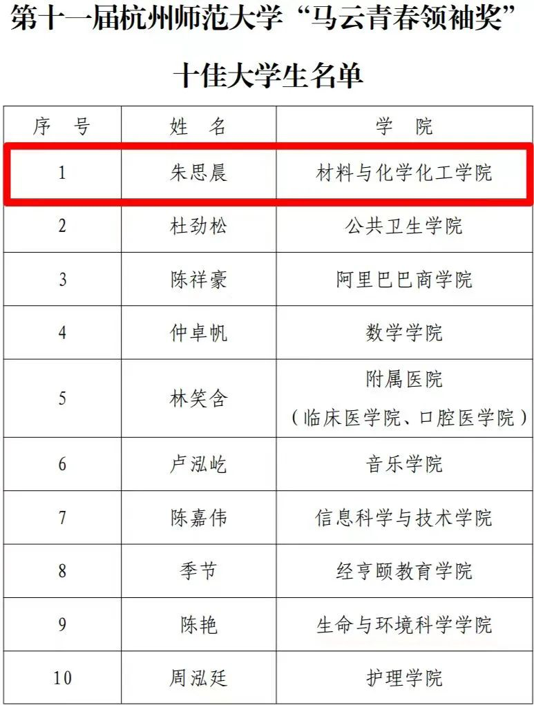 5月24日,18:00-20:30,我校第十一届“马云青春领袖奖”十佳大学生答辩于仓前校区慎园8号楼102室举行,现场20位选手各展风采,做爱视频 2020级材料与化工专业研究生朱思晨同学(导师:曹君教授)专业水平突出、综合素质优异,现场答辩精彩,最终脱颖而出,成功获评此次荣誉称号。