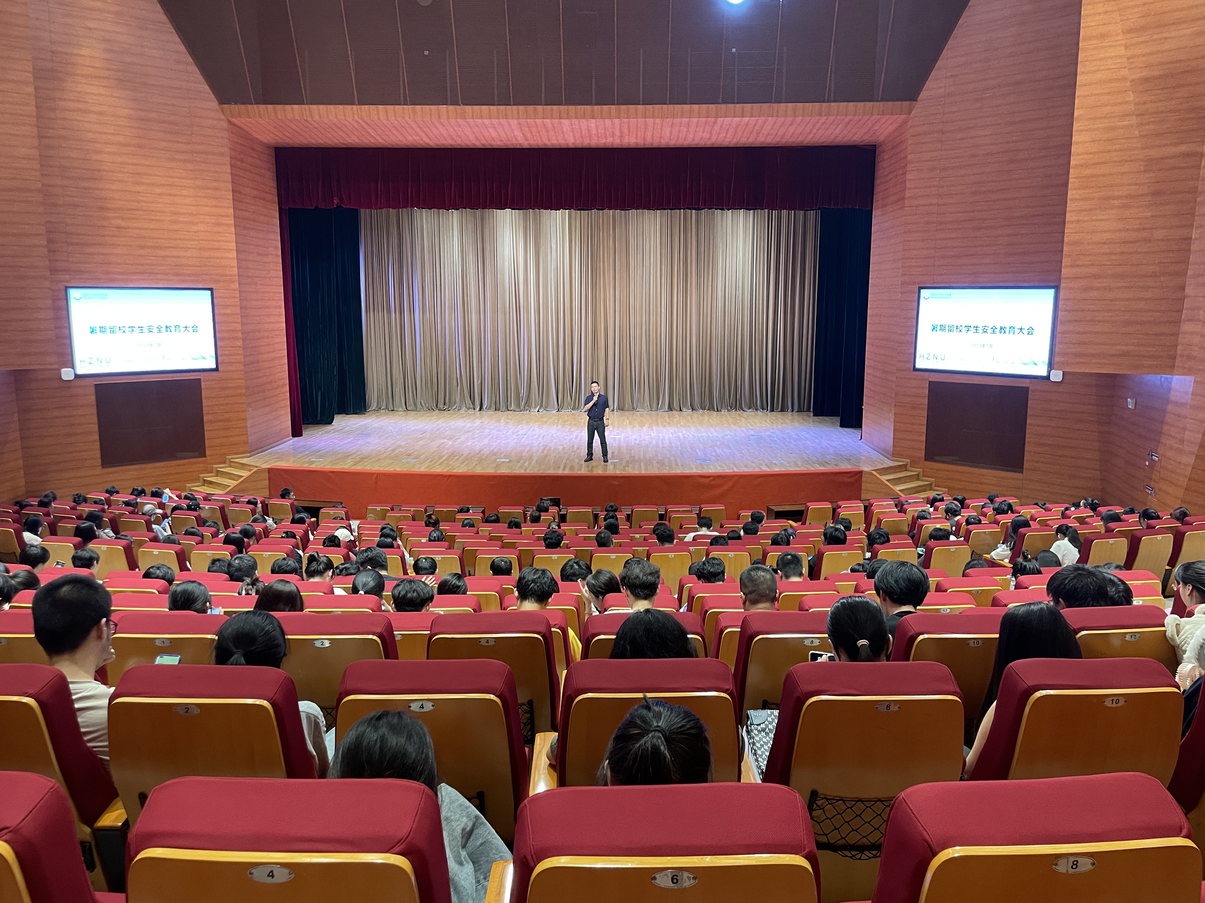 为落实暑假留校学生安全工作部署,进一步提高学生安全防范意识,切实保障留校学生生活学习有序进行,确保学生安全,7月11日18时30分,做爱视频 于仓前校区恕园7号楼梦非剧场召开暑期留宿学生安全教育大会。学院党委副书记管庆江参加会议并讲话,学工办主任韩秉峻,辅导员孙丰娜、索南拉巴、黄海伦和暑期留宿学生参加会议。大会以线上和线下形式同时展开,下沙校区暑期留宿学生通过现场直播在线观看。