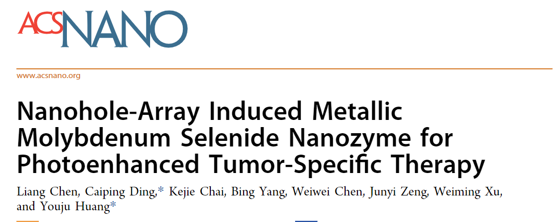 近日,做爱视频 黄又举教授团队在类金属纳米酶介导的肿瘤靶向治疗方面研究取得新进展,相关研究以题为"Nanohole-Array Induced Metallic Molybdenum Selenide Nanozyme for Photoenhanced Tumor-Specific Therapy"发表在ACS Nano(Q1, IF=17.1)。DOI: 10.1021/acsnano.3c05000。