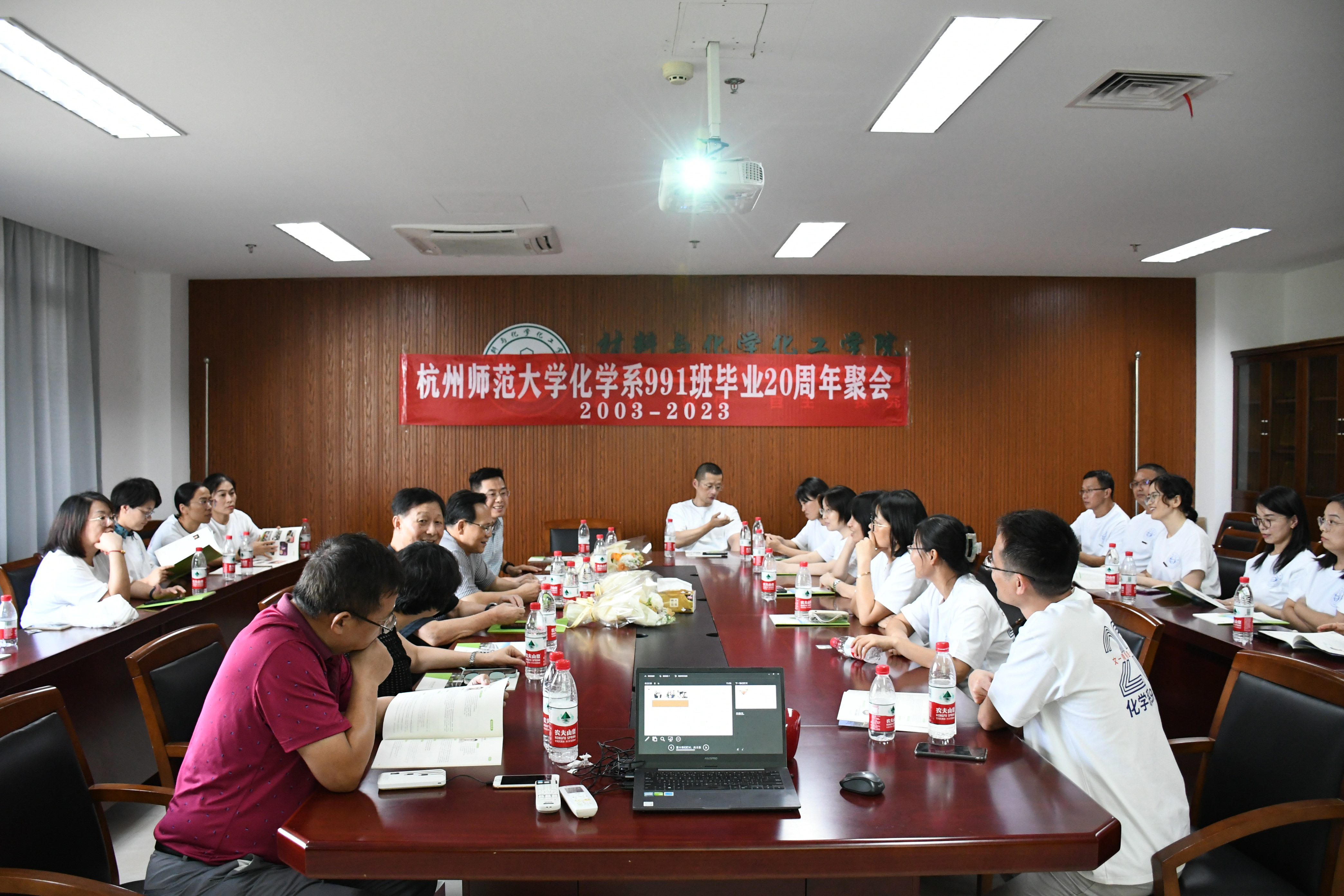 金秋飒爽,丹桂飘香,喜逢国庆。10月1日下午,做爱视频 化学991班二十余位校友欢聚仓前校区,举办“青春路 同窗情”毕业二十周年同学会。校友们重回母校、重聚材化,跨越时间长河,再叙师生情谊,同谋母校发展,重温师大岁月。时任化学系主任盛国定、化学991班班主任徐土根,时任年级辅导员、阿里巴巴商学院党委书记何军,任课教师代表邱瑾、刘金华,学工办主任兼学院校友工作联络员韩秉峻等热情接待了校友们。活动由化学991班校友、杭州市萧山区第二高级中学副校长任瀚旻主持。