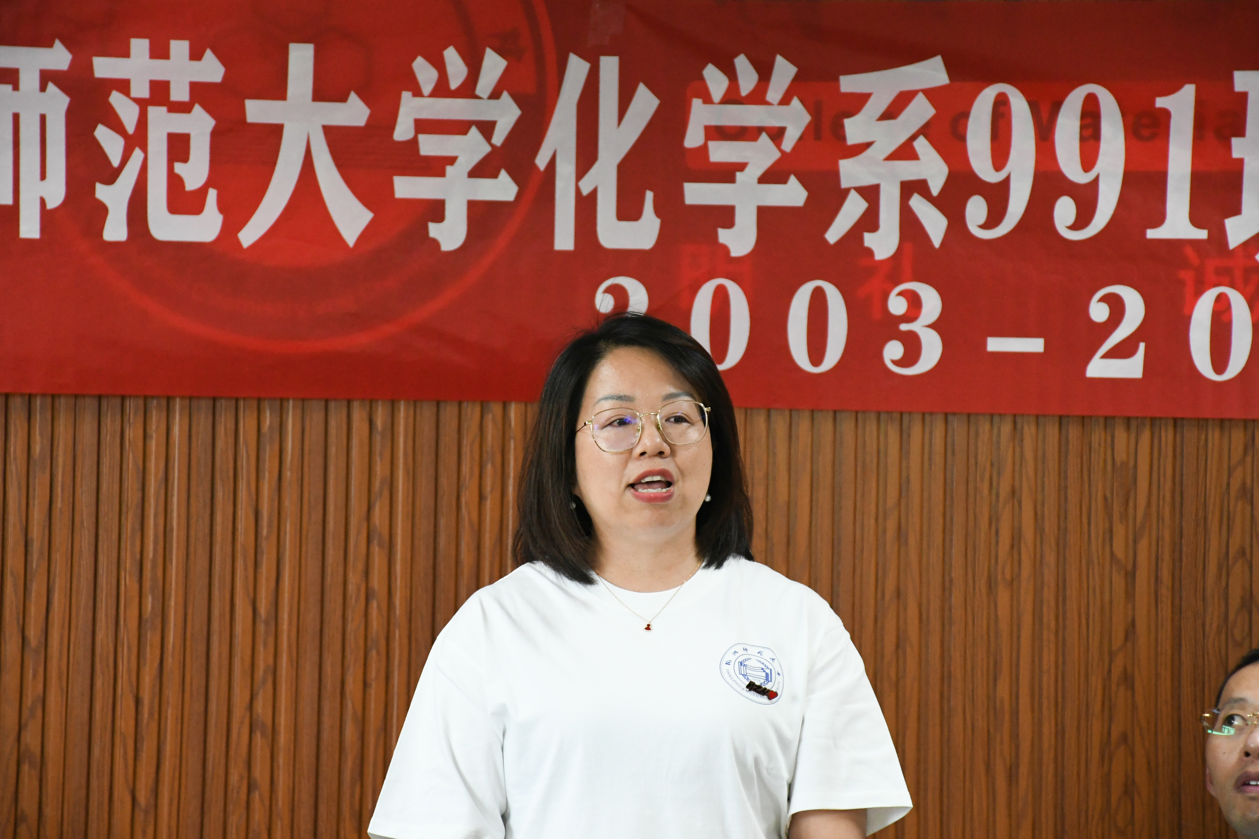 会前,校友代表向恩师们敬献了纪念品和鲜花,表达感恩之情。会上,化学991班的成员们依次发言,分享了自己毕业后的工作经历和生活感悟,表达了对老师的感谢。