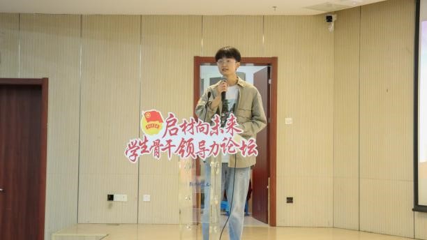 论坛最后,管庆江作总结发言,他在热烈祝贺同学们成为一名学生骨干的同时衷心感谢大家为服务师生、校院发展贡献光和热,对同学们提出希望。一是整体上要又红又专,既要思想过硬,又要学业优秀,还要工作出色;二是管理上要有条有理,做到制度化、规范化,做好时间管理;三是工作上要有声有色,工作中保持时刻在思考,推演复盘总结提升;四是为人上要有情有义,带着情怀去工作,要做学生友,不做学生官。他衷心希望同学们在用心用情服务师生和校院发展中不断提升自身领导力,强化团队意识,充分发挥引领作用。