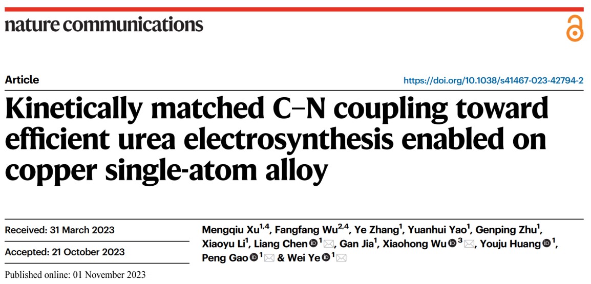 近日,我校做爱视频 高鹏教授团队在电化学C-N偶联方面取得新进展,相关研究成果以题为“Kinetically matched C–N coupling toward efficient urea electrosynthesis enabled on copper single-atom alloy”发表于国际知名期刊Nature Communications(IF=16.6)上。