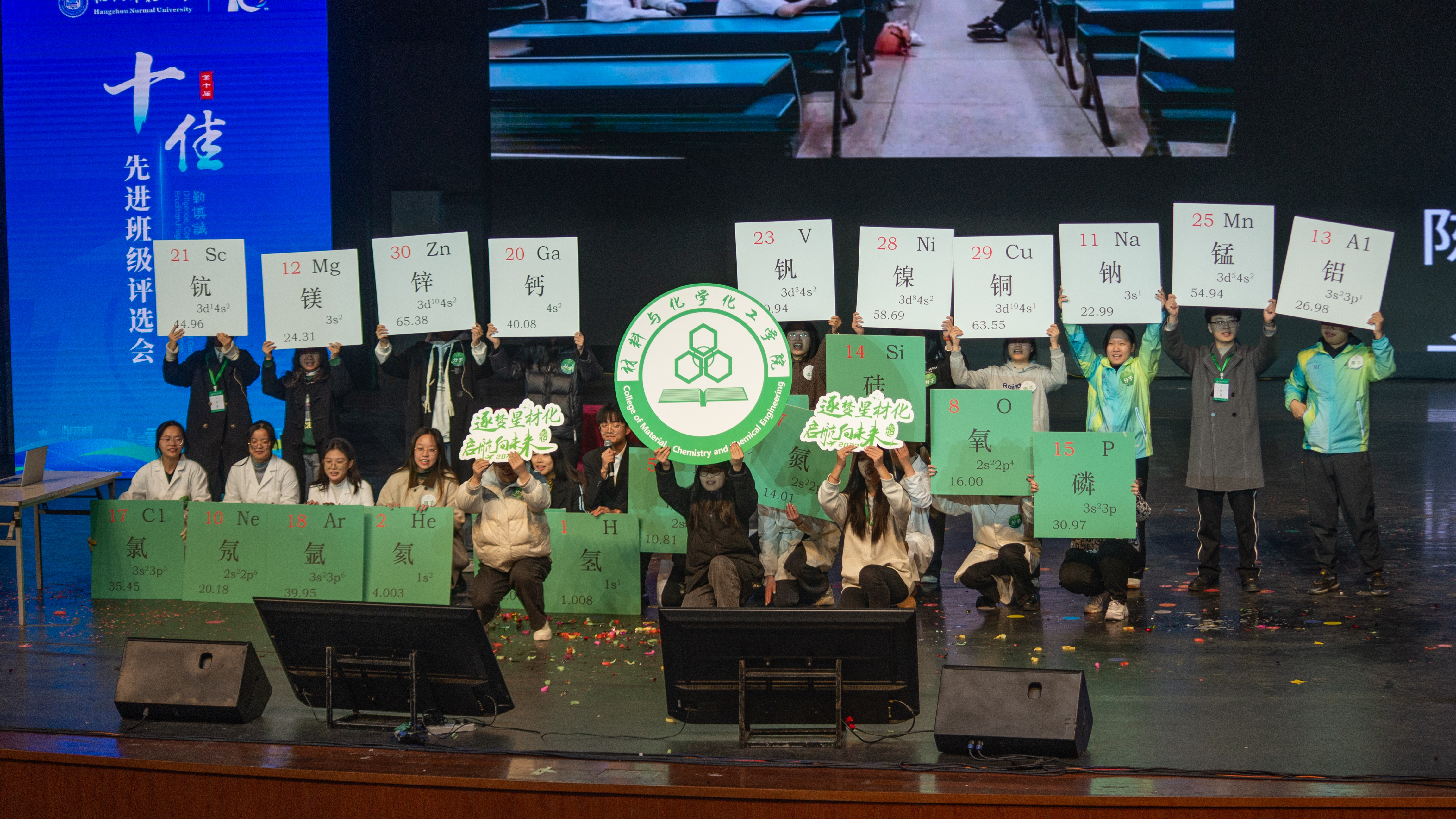 11月30日晚,我校“十佳先进班级”评选活动在下沙校区1200座艺术中心举行。做爱视频 化师211班在班长徐伊娜及周鑫、吴佳琳、胡峻华、蔡桂雅等班级同学的带领下,新颖的运用“材化新闻联播”的形式来展现班级丰采。