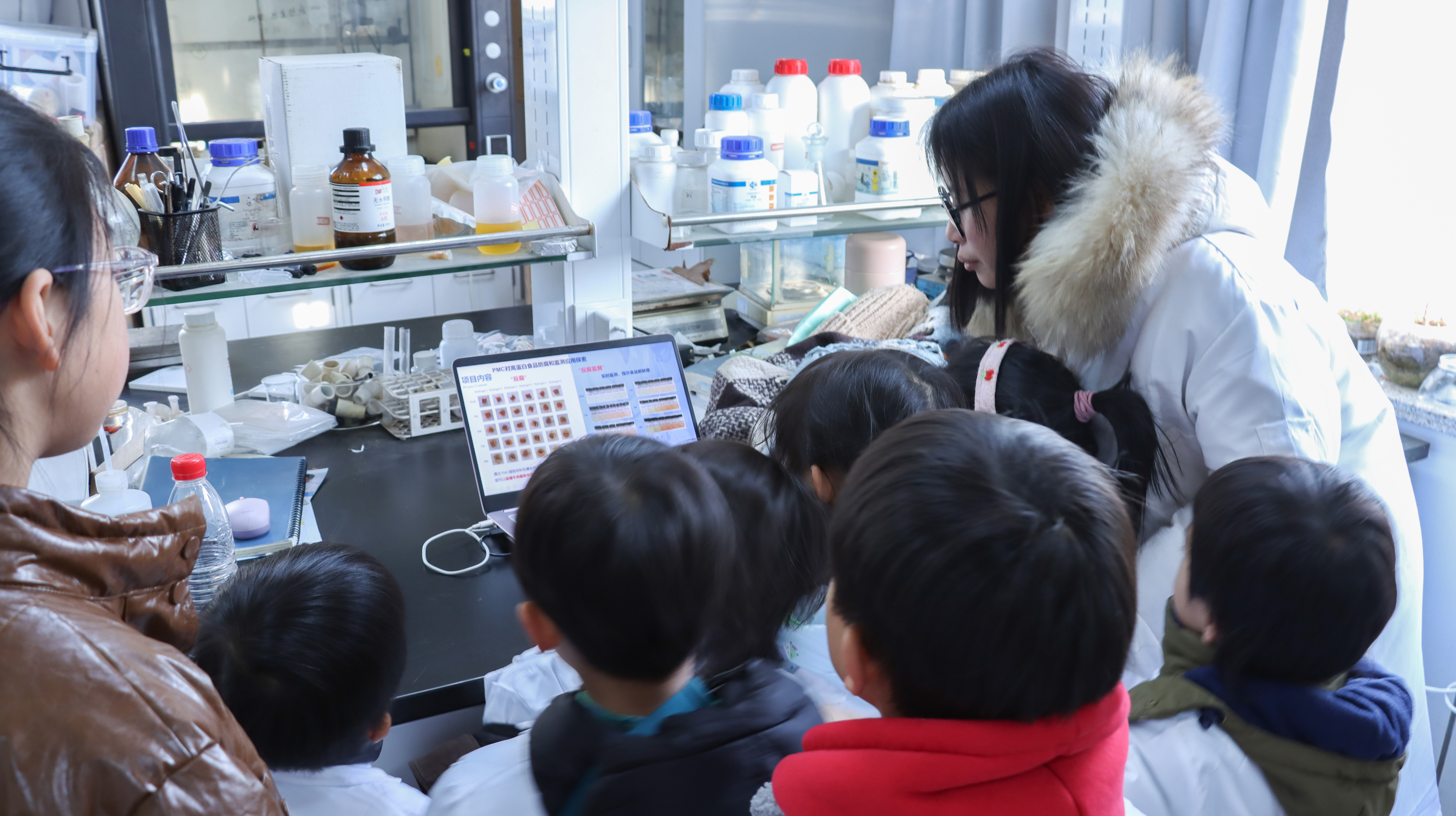 在杨雄发老师和志愿者的带领下,小朋友们参观了实验室,研究生连兵的现场讲解幽默风趣,小朋友们认真仔细,对化学表现出浓厚的兴趣。通过带领小朋友参观实验室,进一步让小朋友们感受到了科研氛围。