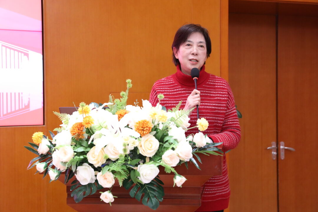 上海市三八红旗手、上海七宝中学特级教师、1981届化学专业毕业生杨敏毅作为校友代表发言。她深情回忆了自己36年的教坛生涯,她指出,在母校三年学习获得的积淀,让她有底气、有能力去面对工作上的转型。她始终为“师大人”这一身份感到自豪。未来,她希望继续做一名可亲、可敬、可信的专业老师,始终活跃在心理健康教育宣传领域,竭尽所能为母校发展添砖加瓦,为母院增光添彩。
