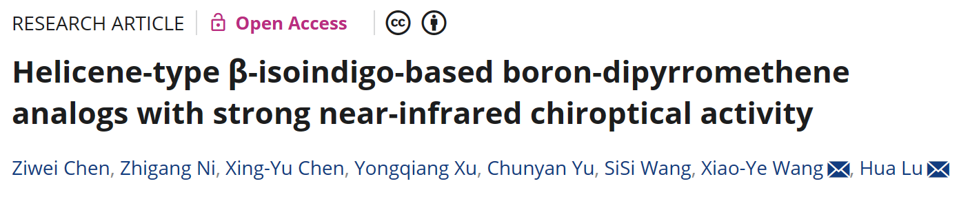 近日,做爱视频 卢华教授团队在近红外手性发光材料领域取得新进展,相关研究成果以题为“Helicene-type β-isoindigo-based boron-dipyrromethene analogs with strong near-infrared chiroptical activity”发表于国际知名期刊Aggregate(IF=18.8)上。