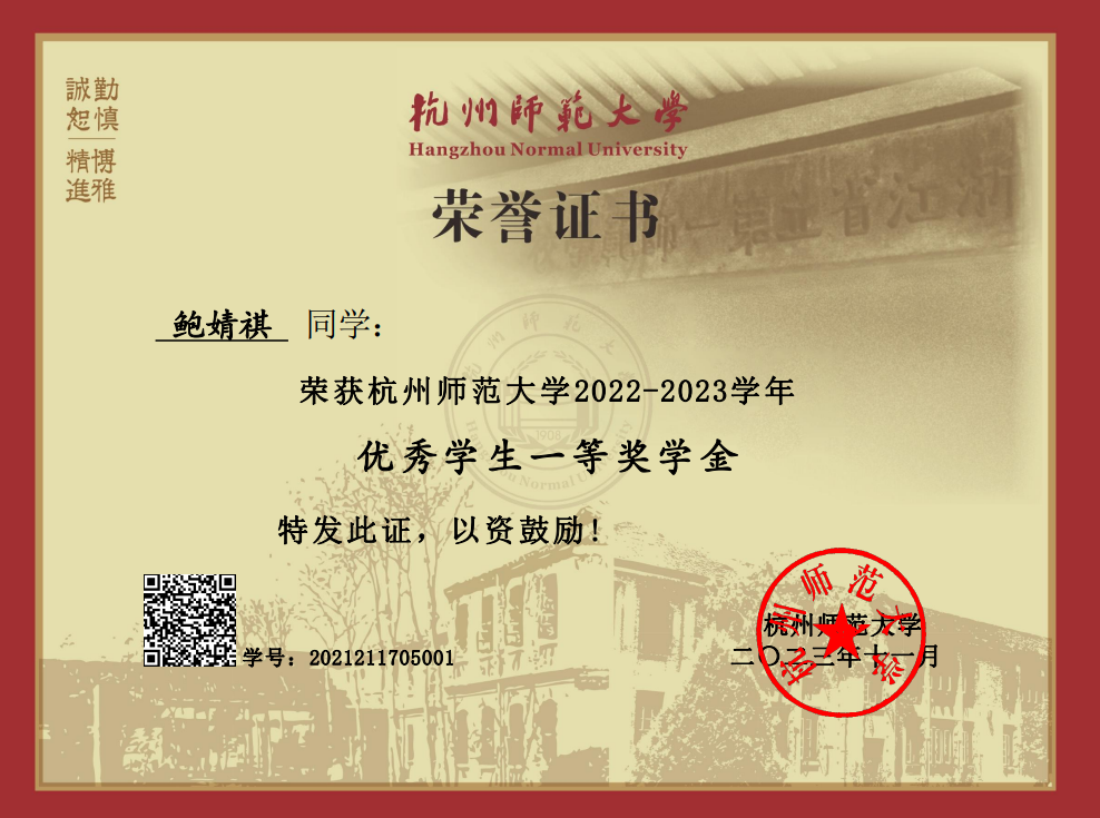 三年来,鲍婧祺同学孜孜以求,精益求精,单学期最高绩点达4.51,2023年综测排名第二,27门满绩,45门课成绩90分以上,获得了国家奖学金,一等奖学金,校三好学生等荣誉。
