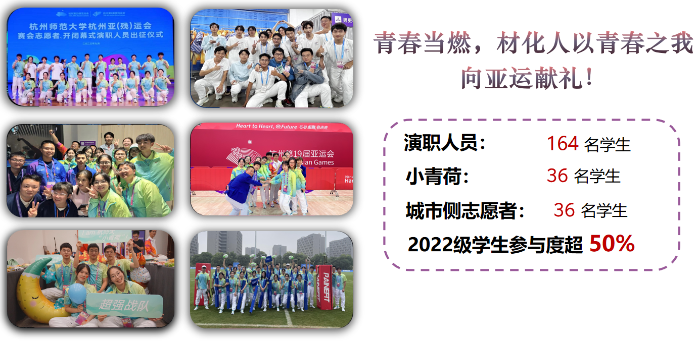 在本次盛大的亚运会中,她积极号召各支部团员报名参与,共有236名材化学子闪耀在“大莲花”、亚运场馆等领域岗位的各个角落。同时,她带领暑期社会实践工作,共号召200余名同学结合专业特色投入到支教等实践活动,其中由她组建的实践团队走出校园,感悟党史,获评重点团队。