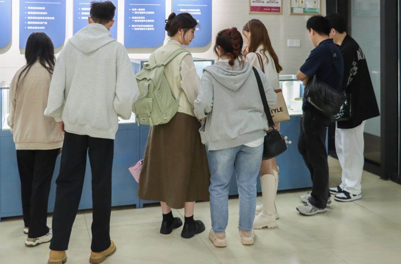 学生会主席团成员带领温大化材学院的老师和同学参观学校,领略杭师大校园风光。