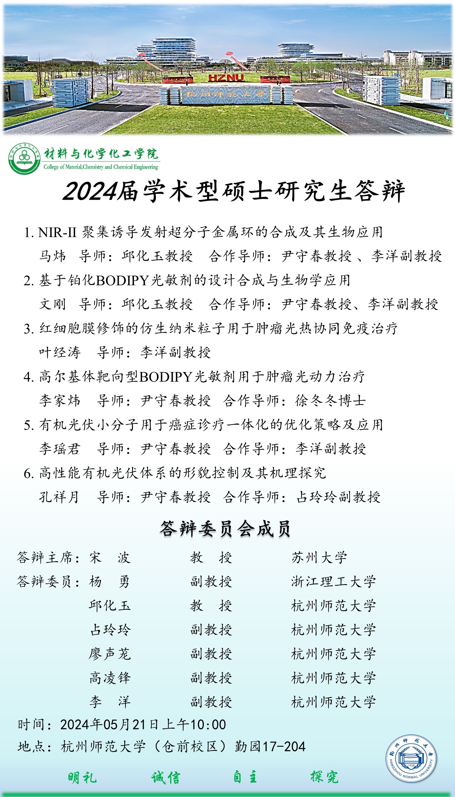 2024届硕士研究生毕业论文答辩安排(5月21日-4)