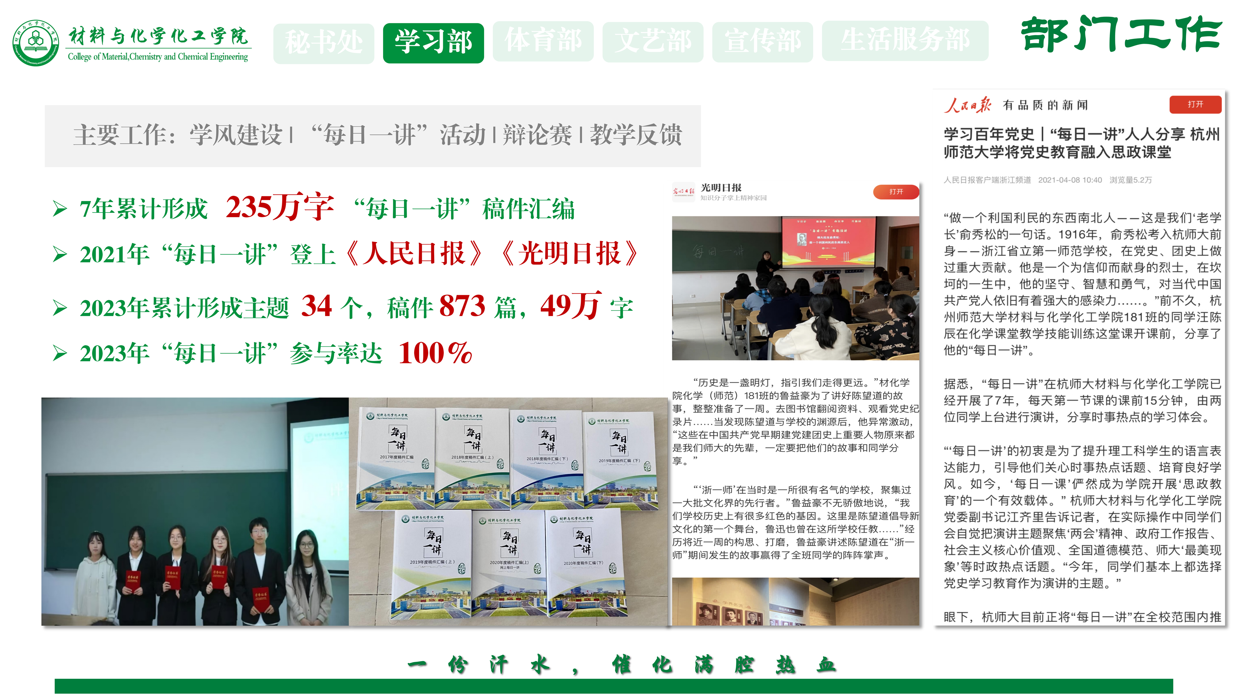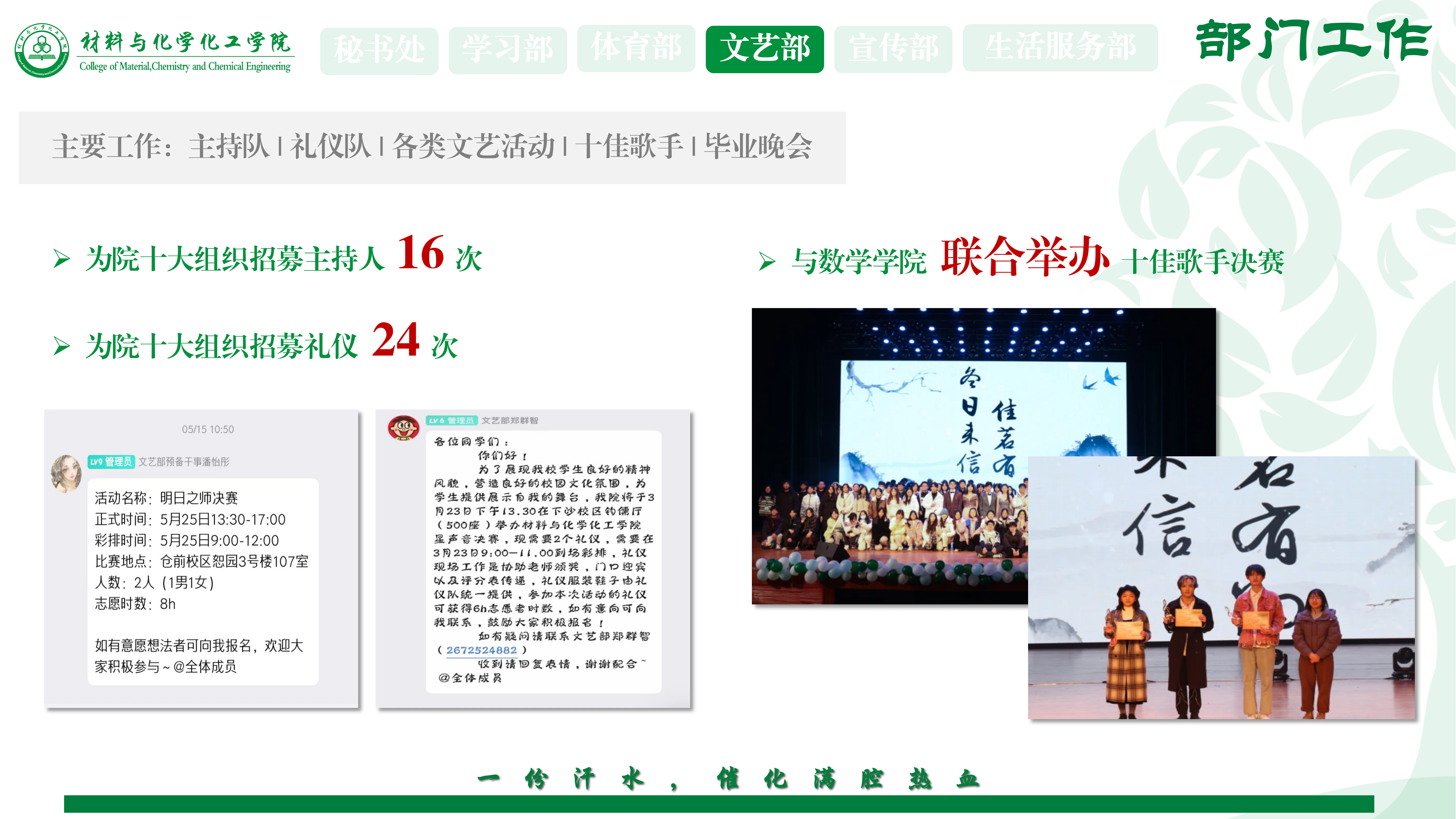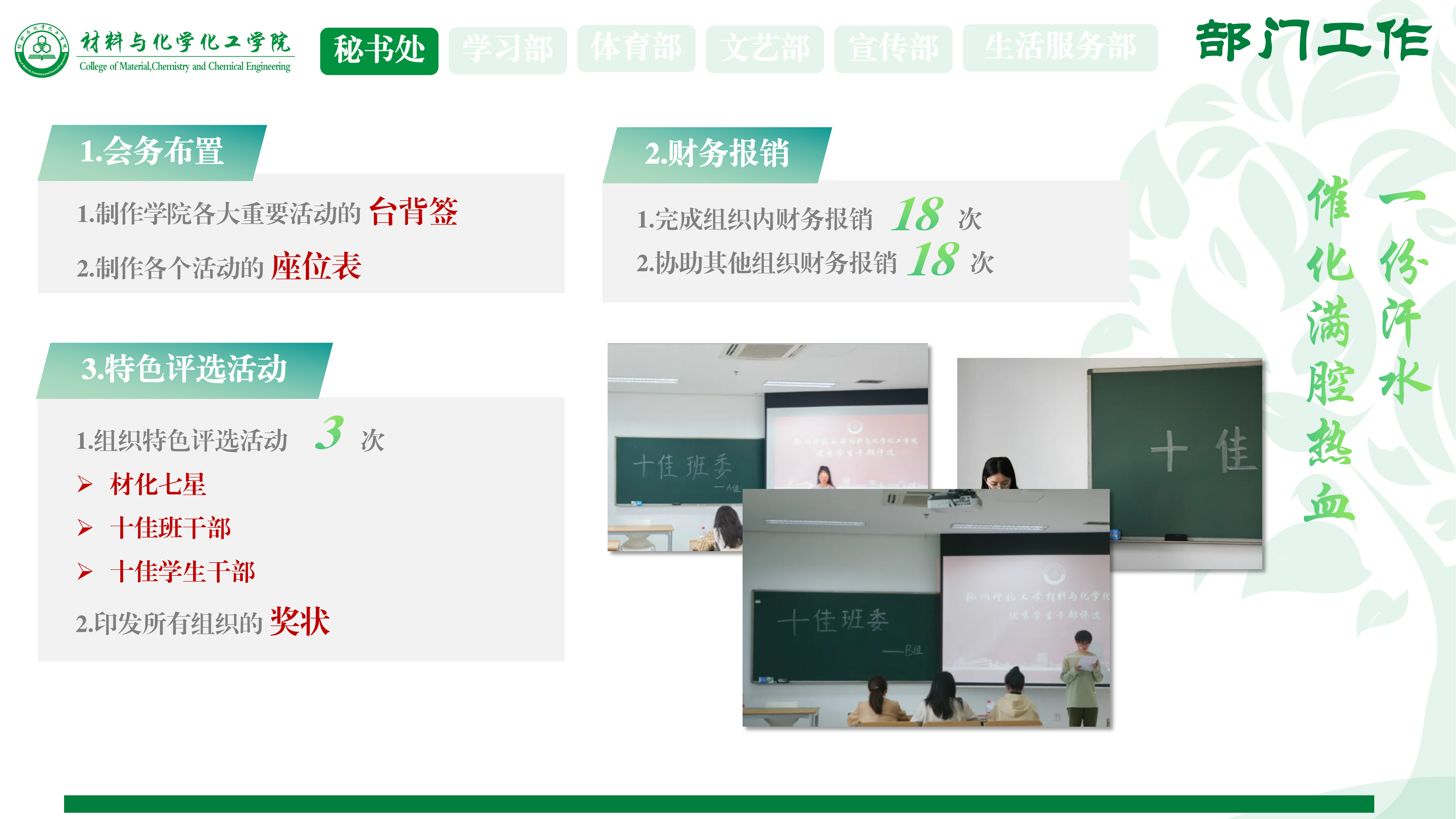 二、“一滴汗水,催化满腔热血”——部门工作