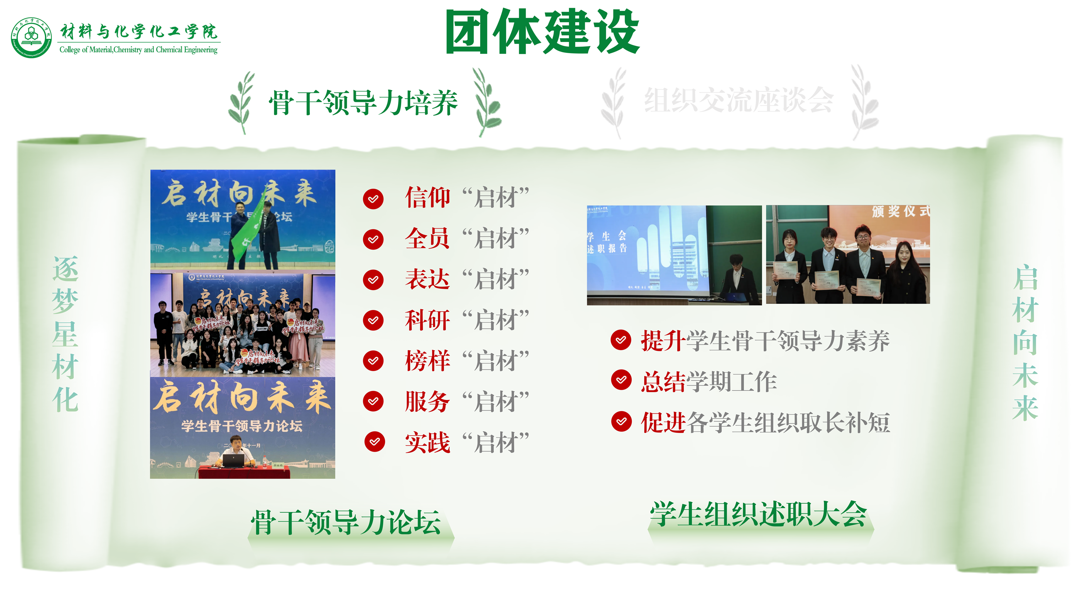 未来,在更多材化学子的努力下,我们将进一步打造一个创新型、潜质型、智慧型、服务型的学生会。