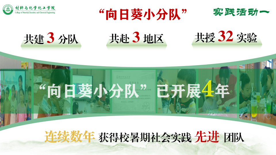 去年,学生会带领“向日葵小分队”进行暑期社会实践活动,通过传播亚运、科学实验等教学实践形式,走向社会、接触社会、了解社会、投身社会,已连续三年获得了“暑期社会实践先进团队”称号,并且将在接下来的暑假中开展第四次社会实践活动。