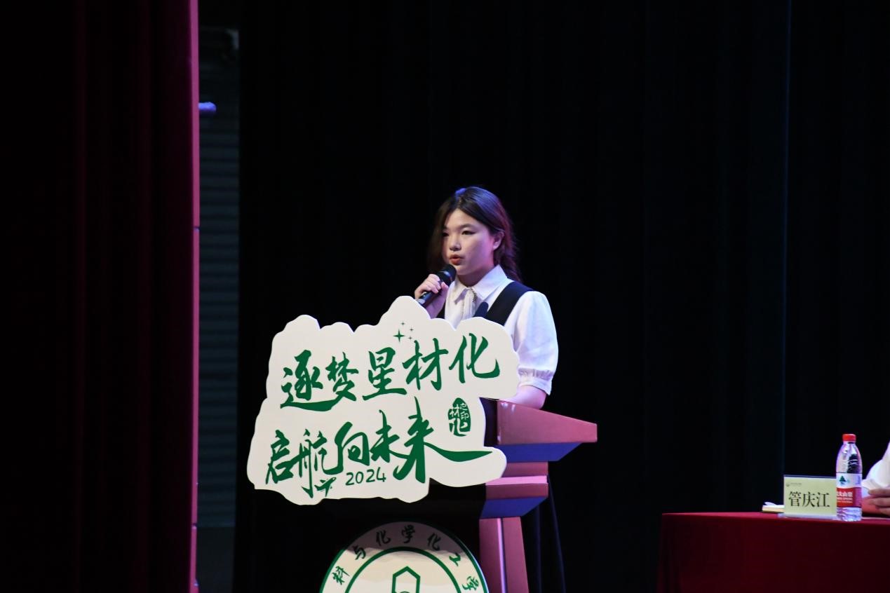学院院长章鹏飞,党委书记江齐里,校友代表、1984届化学教育专业校友金富强,副院长李志芳、黄又举,党委副书记管庆江,院长助理、化学系主任邵欣欣,院长助理、化工系主任汤龙程,院长助理、高分子系主任于双江, 2024级新生班主任团队,全体辅导员与每一位满怀憧憬和期待的新生们共赴这场关于梦想启航、青春绽放的盛宴。开学第一课由管庆江主持。