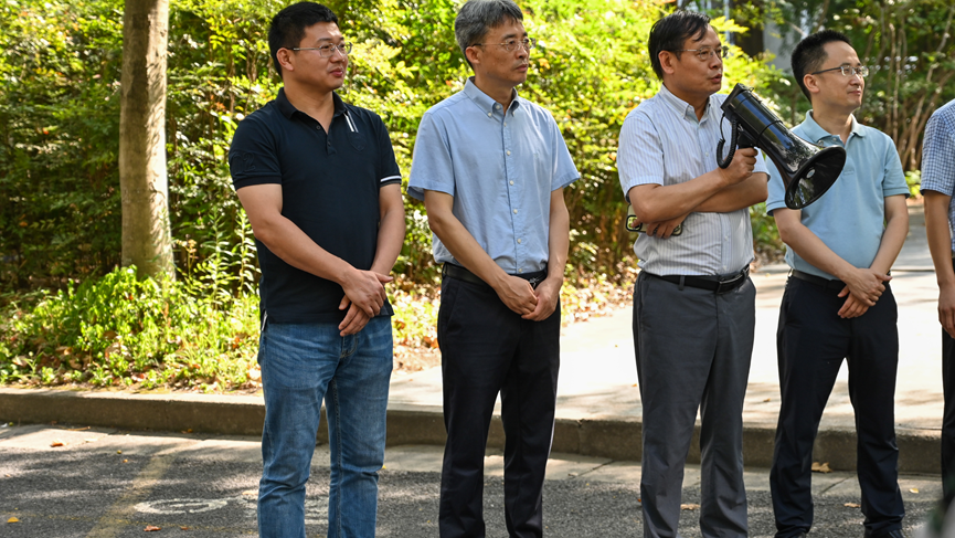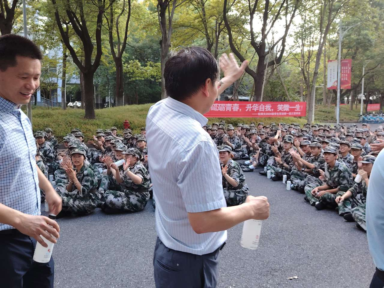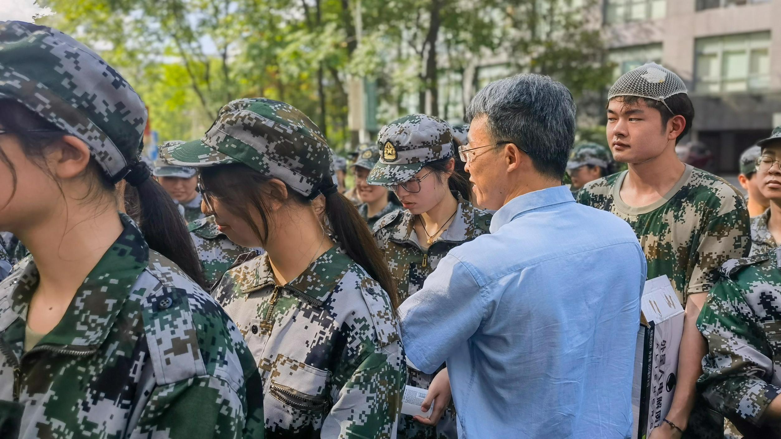 连日的高温酷暑考验着受训学生的体能和意志,也时刻牵动着学院领导和老师的心,为深入了解2024级新生军训情况,鼓舞提振军训学生士气,9月9日上午,学院院长章鹏飞,党委书记江齐里,副院长李志芳、黄又举,军训领导小组组长、党委副书记管庆江,辅导员赖雷雨和值班班主任叶婧一同前往军训训练场地,看望慰问全体参训学生与教官,为他们送去清凉。