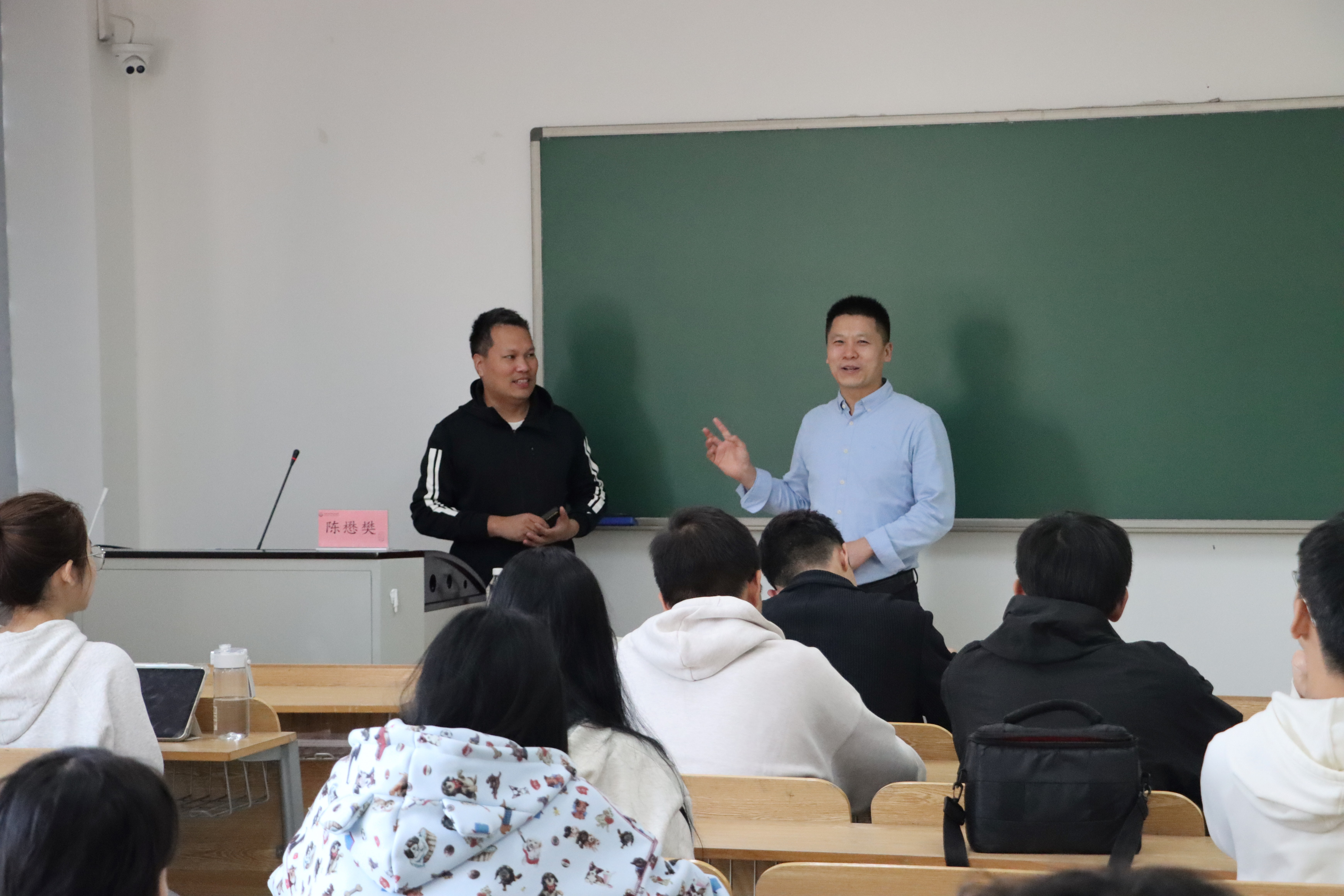 陈懋樊通过与同学们的互动作为培训会的开场,用其浑厚的嗓音、饱满的热情瞬间调动起整个培训会场的气氛,并提出问题“什么是艺术?”引导同学们积极思考。他指出,艺术是想象力,是一个人对于美的理解,对于自我的理解,具备发现美的眼睛也是一种能力。正如校园风景摄影,校园犹如一间漂亮的大房子,同学们通过在“六室三厅两阳台两场两馆”的穿梭之中获得灵感,拍摄校园风光,赋予作品个人情感。