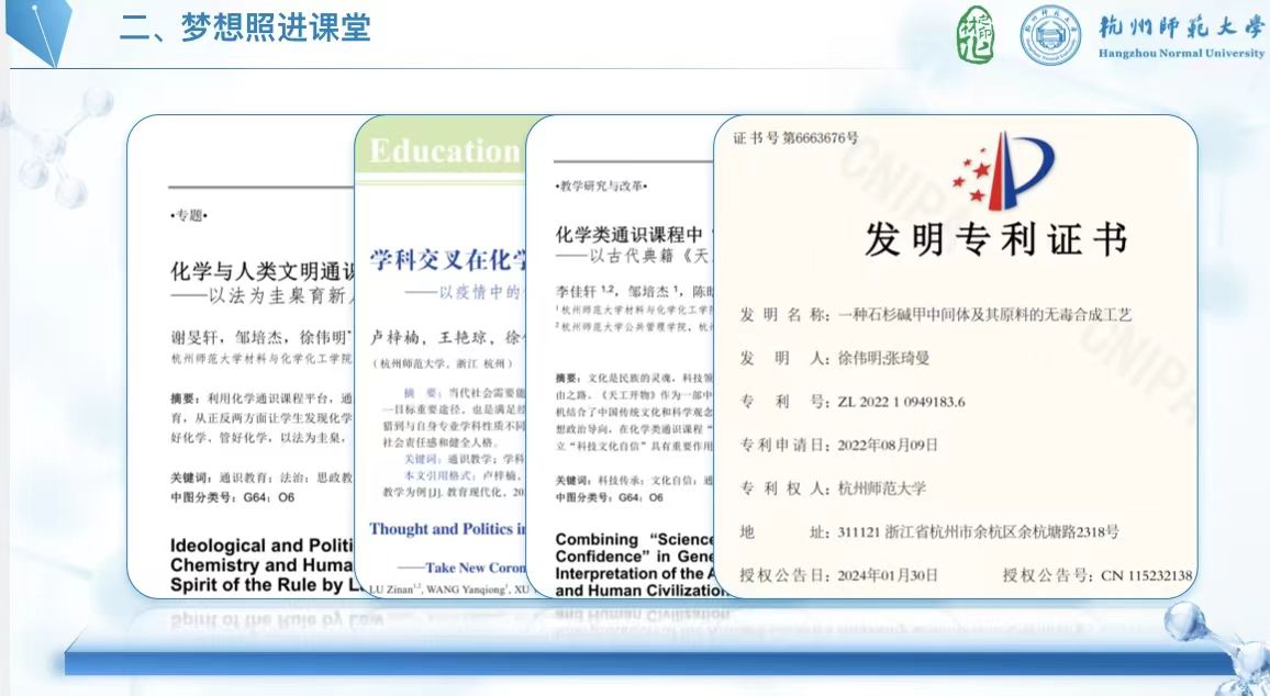 徐伟明教授曾4次担任班主任,5次获得优秀班主任。创造截至目前学校班级最高考研率84%。学评教考核连续10年以上优秀,终身免考核。指导本科生获省级及以上项目和奖励10余项,指导本科生以第一作者发表教学科研论文20余篇。主持包括国家自然科学基金在内研究项目40余项,发表高水平论文100余篇,获授权发明专利36件,以第一完成人获浙江省技术发明奖等奖励7项。