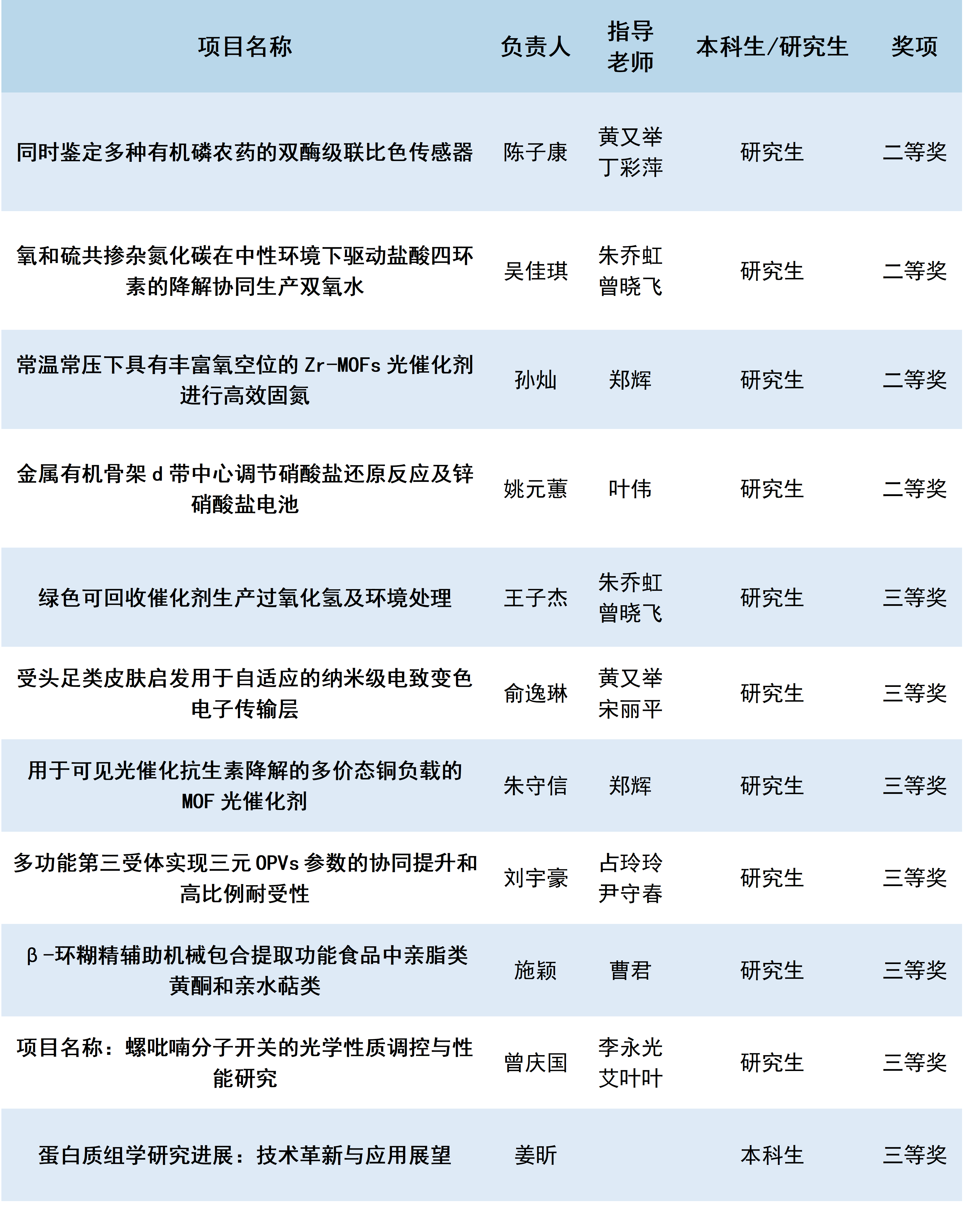 “精进杯”评选活动进一步营造了浓厚的校园学术氛围,强化了我校大学生学术创新精神和科研能力,提高了学生学术水平及团队意识。祝贺以上获奖团队,感谢指导老师的悉心指导,希望材化学子能够以获奖团队为榜样,在科研学术之路上持续精进,不断突破创新!