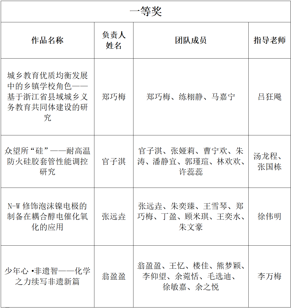 作品名称 | 负责人姓名 | 团队成员 | 指导老师 |