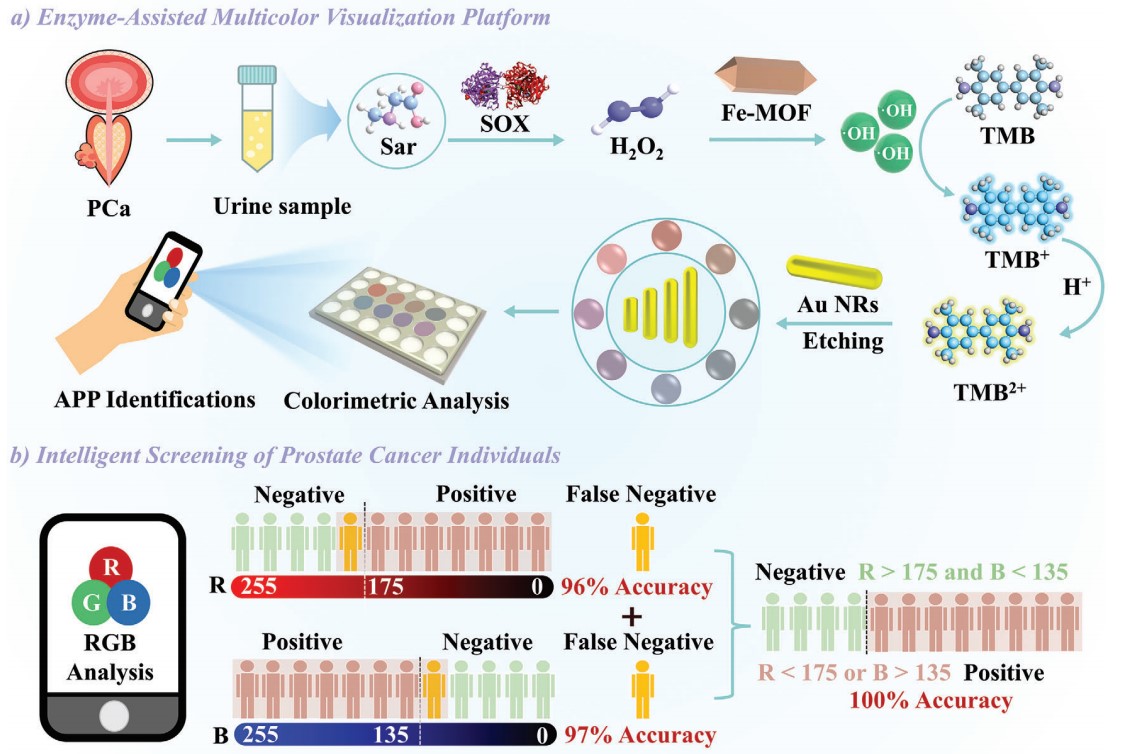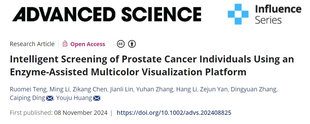 近日,做爱视频 黄又举教授团队在利用酶辅助多色可视化平台对前列腺癌患者进行智能筛查方面取得新进展。相关研究结果以“Intelligent Screening of Prostate Cancer Individuals Using an Enzyme-Assisted Multicolor Visualization Platform”为题发表在Advanced Science (Q1, IF=14.3)。DOI: //doi.org/10.1002/advs.202408825。