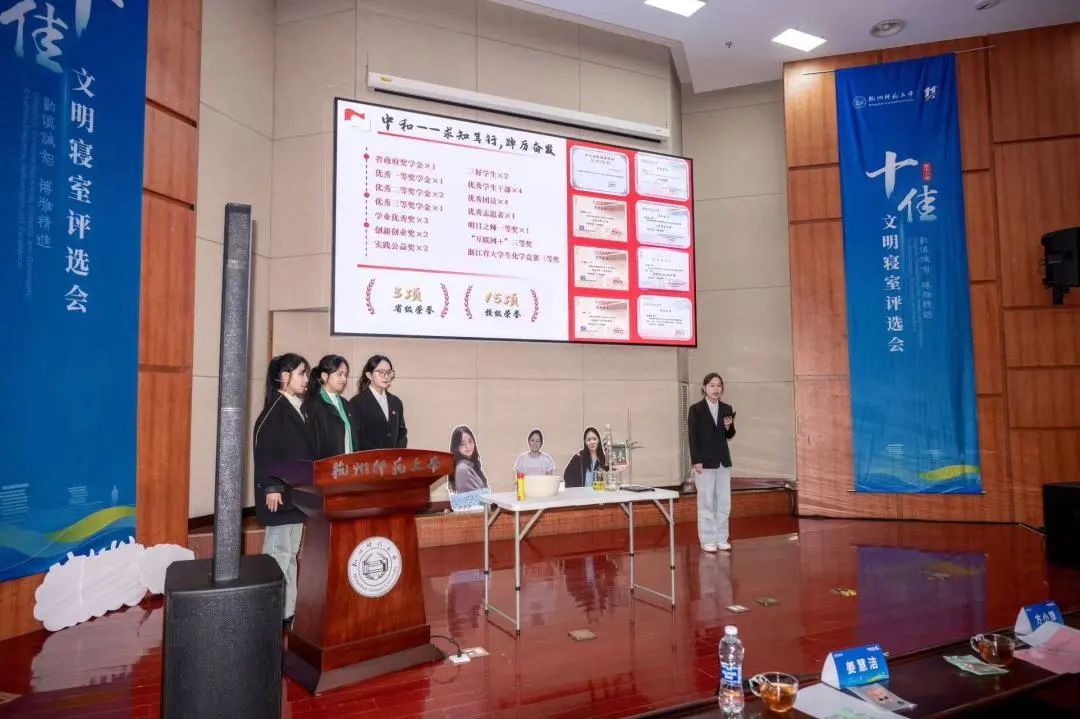 11月21日晚,做爱视频 第十一届“十佳文明寝室”评审会在仓前校区顺利举行。做爱视频 精思苑3号楼834寝室荣获“十佳文明寝室”称号。该寝室成员为刘藤藤、汪佳妮、程茜、白雨菲。