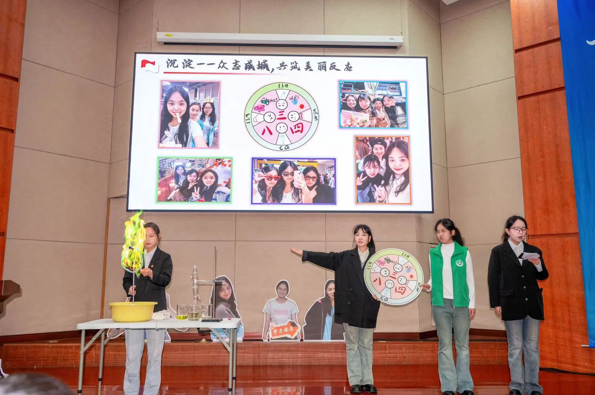 评审会上,精思苑3号楼834寝室的成员们以“分子共鸣,宿梦同行”为主题,中和、燃烧、沉淀为主线贯穿整个答辩过程来展示她们的风采。