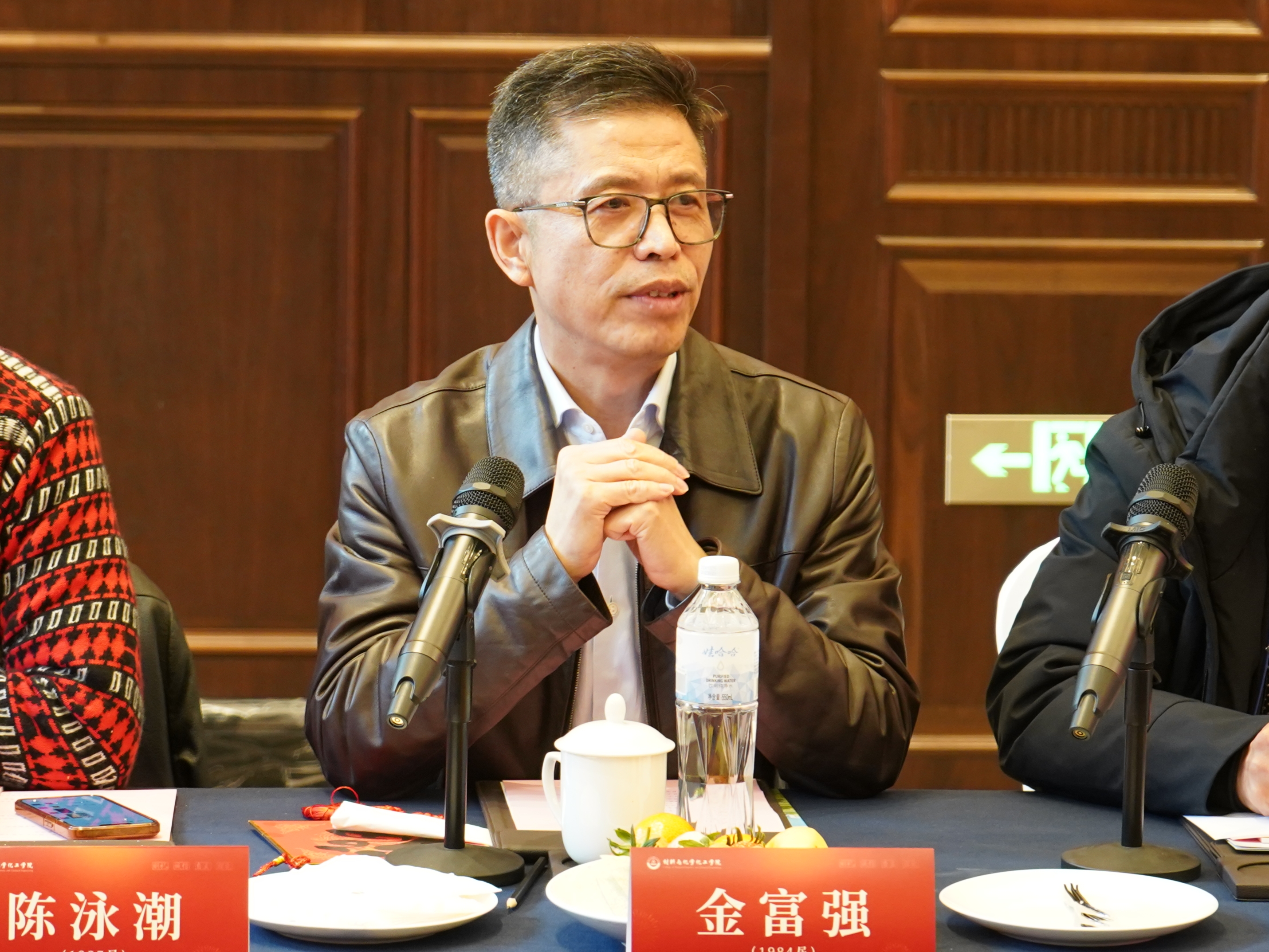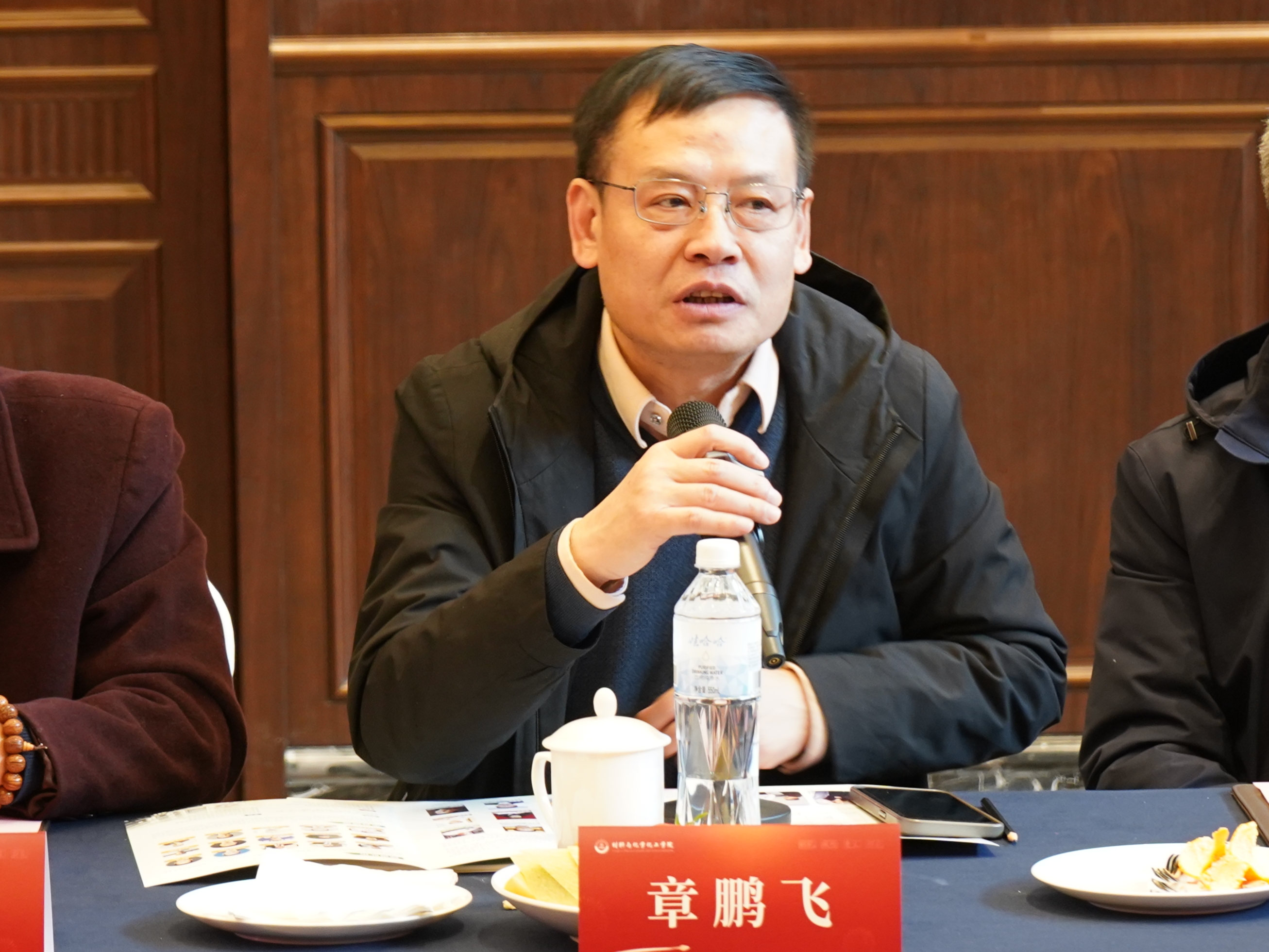 会议现场暖意融融、气氛热烈。学院院长章鹏飞首先代表学院向广大校友致以诚挚问候和新年祝福,并感谢戴茂新校友及所办企业杭州龙岗故事观堂对座谈会的大力支持。他详细介绍了学院的基本情况,包括学院的发展历程、学科建设、师资力量、教学成果以及近年来在人才培养和科研创新等方面所取得的显著成绩。希望通过此次座谈会,进一步凝聚校友力量,实现学院与校友的共赢发展,共创未来。