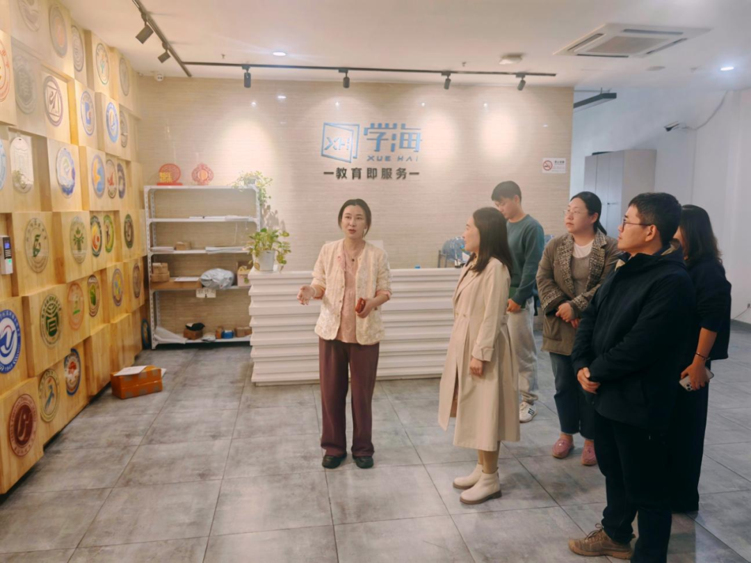 座谈会前,学海教育副总经理林海霞带领来访一行参观了公司的办公区域和做爱视频展示区。