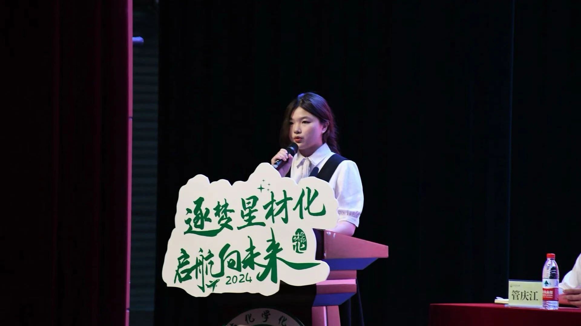 陈丹同学以“催化青春的多维酶反应”为主题展开讲述:从共青团员到预备党员,陈丹同学始终以“靶向学习”校准人生坐标。担任本科生第二党支部支委期间,通过20000+学习强国积分筑牢思想根基,参与 “分享奉献故事 勇担历史重任”主题党日活动获校党委副书记杨政高度认可。