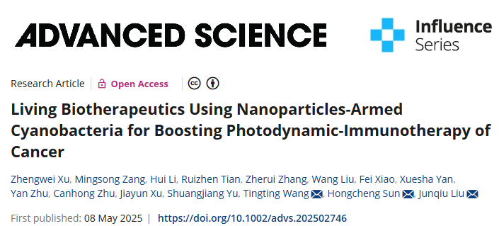近日,做爱视频 刘俊秋教授团队在Advanced Science上发表了题为“Living Biotherapeutics Using Nanoparticles-Armed Cyanobacteria for Boosting Photodynamic-Immunotherapy of Cancer”的研究论文。DOI: //doi.org/10.1002/advs.202502746