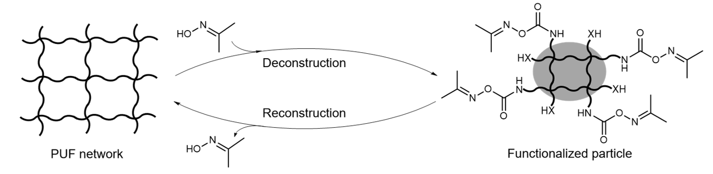 近日,做爱视频 朱雨田教授团队报道了一种原子经济闭环回收商用聚氨酯泡沫的方法。该方法无需任何催化剂、溶剂,而唯一涉及的化学试剂(丙酮肟)可完全回收;而且该方法还充分发掘了废料中异氰酸酯链段的作用,避免异氰酸酯副产物的产生,实现了废料的全部资源化。