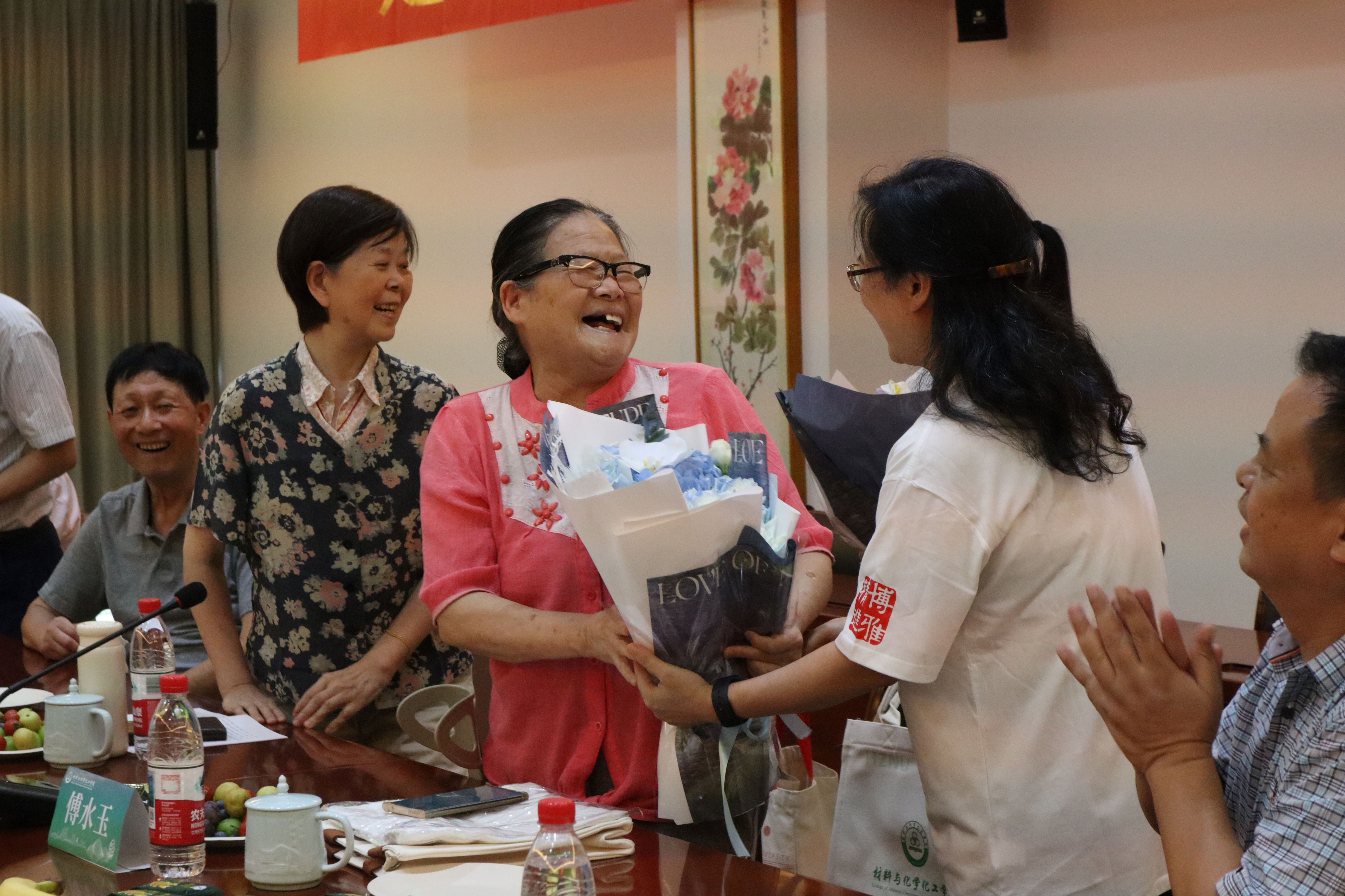 座谈会上,由班级代表向与会老师们献上鲜花。一束束鲜花承载着校友们对恩师深深的敬意与感恩之情,也让现场的氛围愈发温馨。